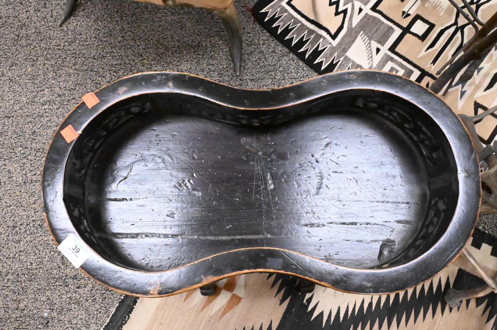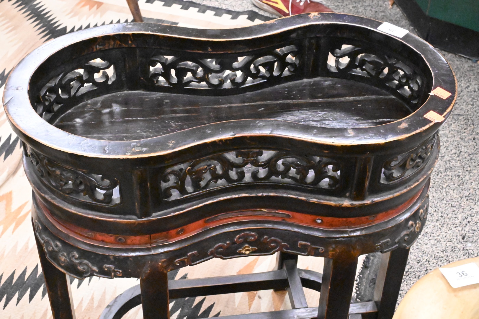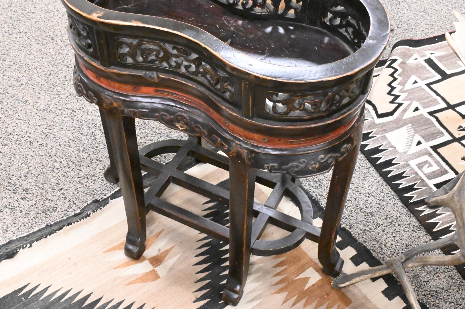 Chinese Shaped Table, having gallery, height 24 1/2 inches, top 12″ x 22 1/2″. Provenance: Estate of Peter Tillou, Litchfield, Connecticut.