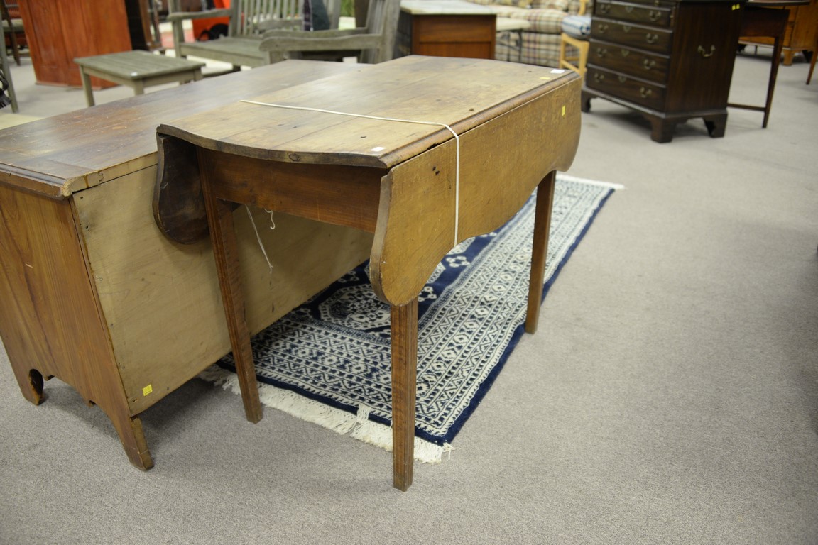 Lot 39: Chippendale cherry Pembroke drop leaf table with shaped top and leaves set on molded legs, circa 1760 crack in top. ht. 27in., top…