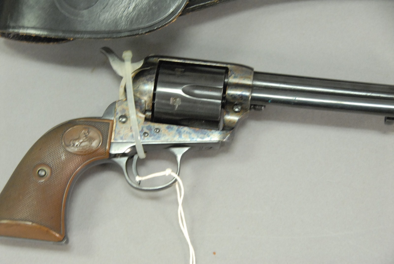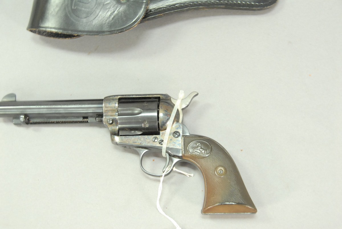 Colt single action army .44 special revolver, .44 caliber, pre-war, 5 1/2 barrel with leather holster. 159 SN-221214