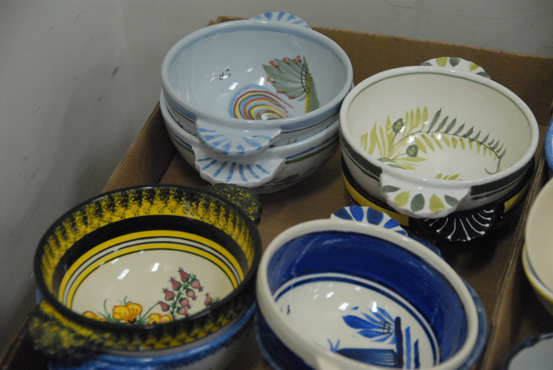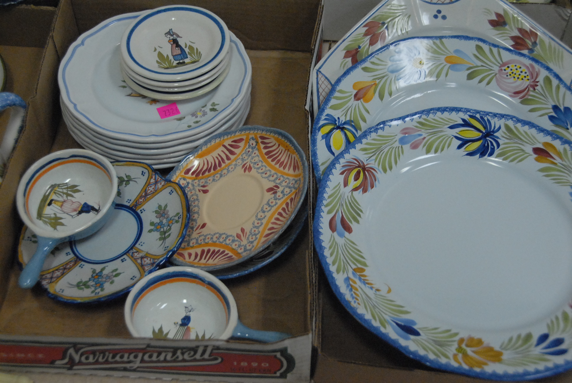 Five box lots of Quimper including cups, saucers, soup bowls, and plates.