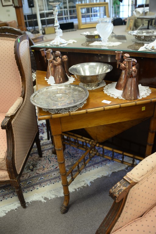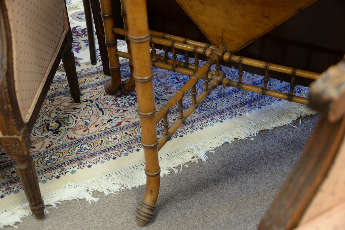 Lot 39: Maple faux bamboo handkerchief drop leaf table with turned legs and stretcher base, attributed to Horner. ht. 29in., wd. 39in., d…