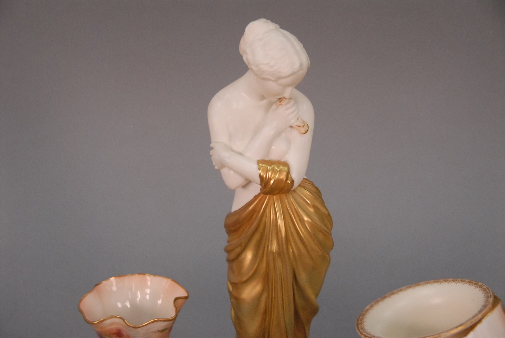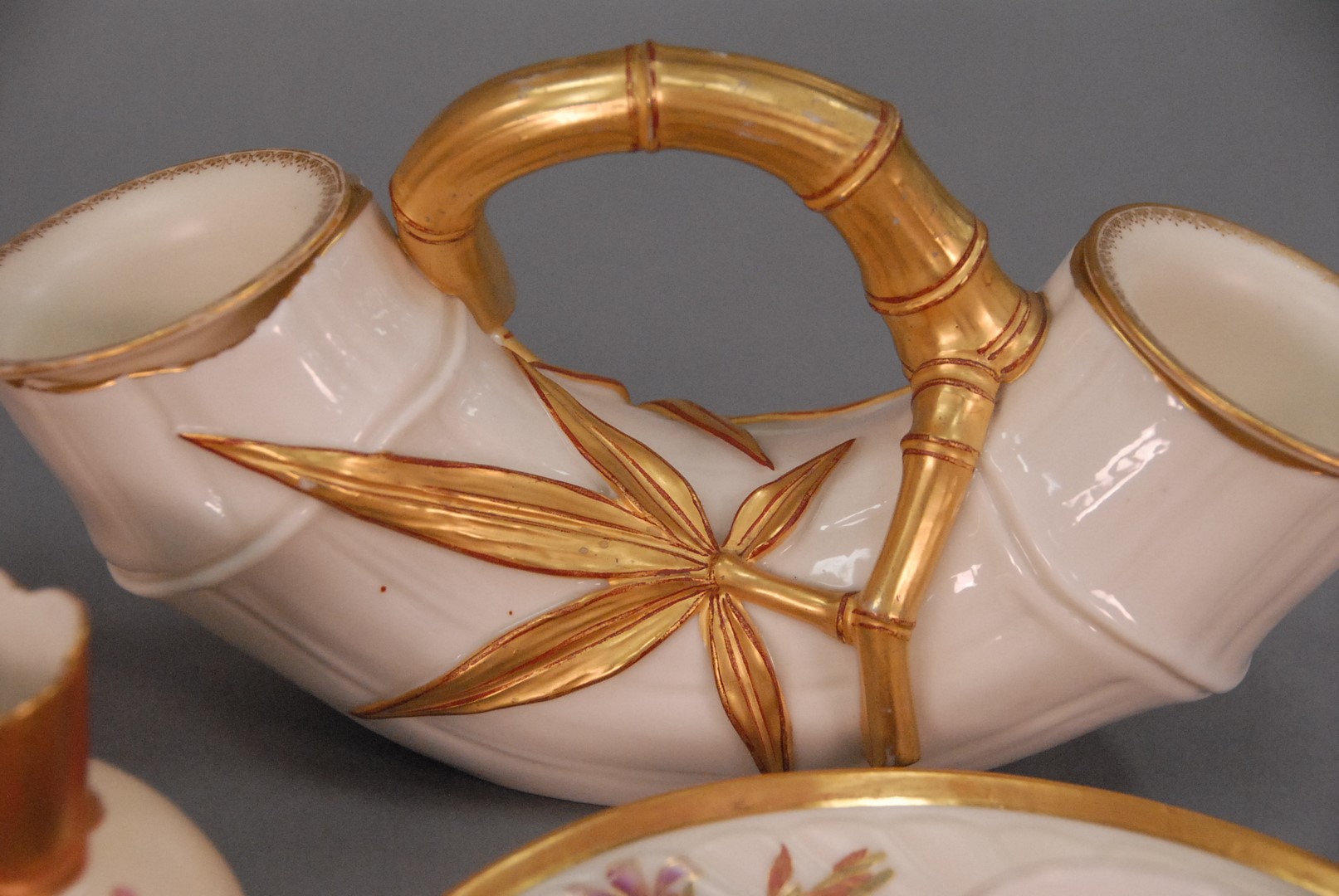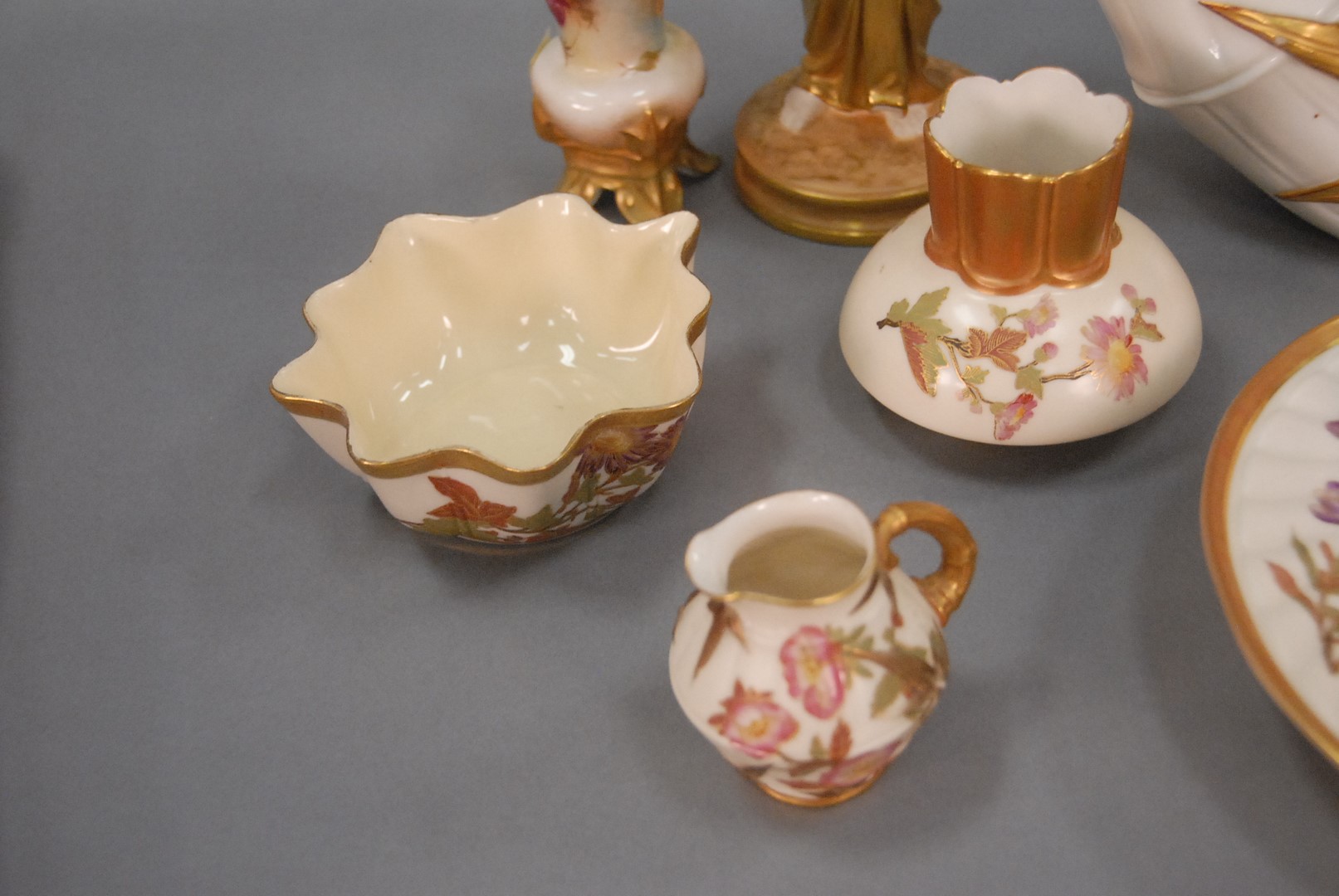 Lot 39: Nine piece lot of Royal Worcester including plate, cup and saucer, two vases, bowl, and creamer, etc. ht. 2 in. to 10 in.