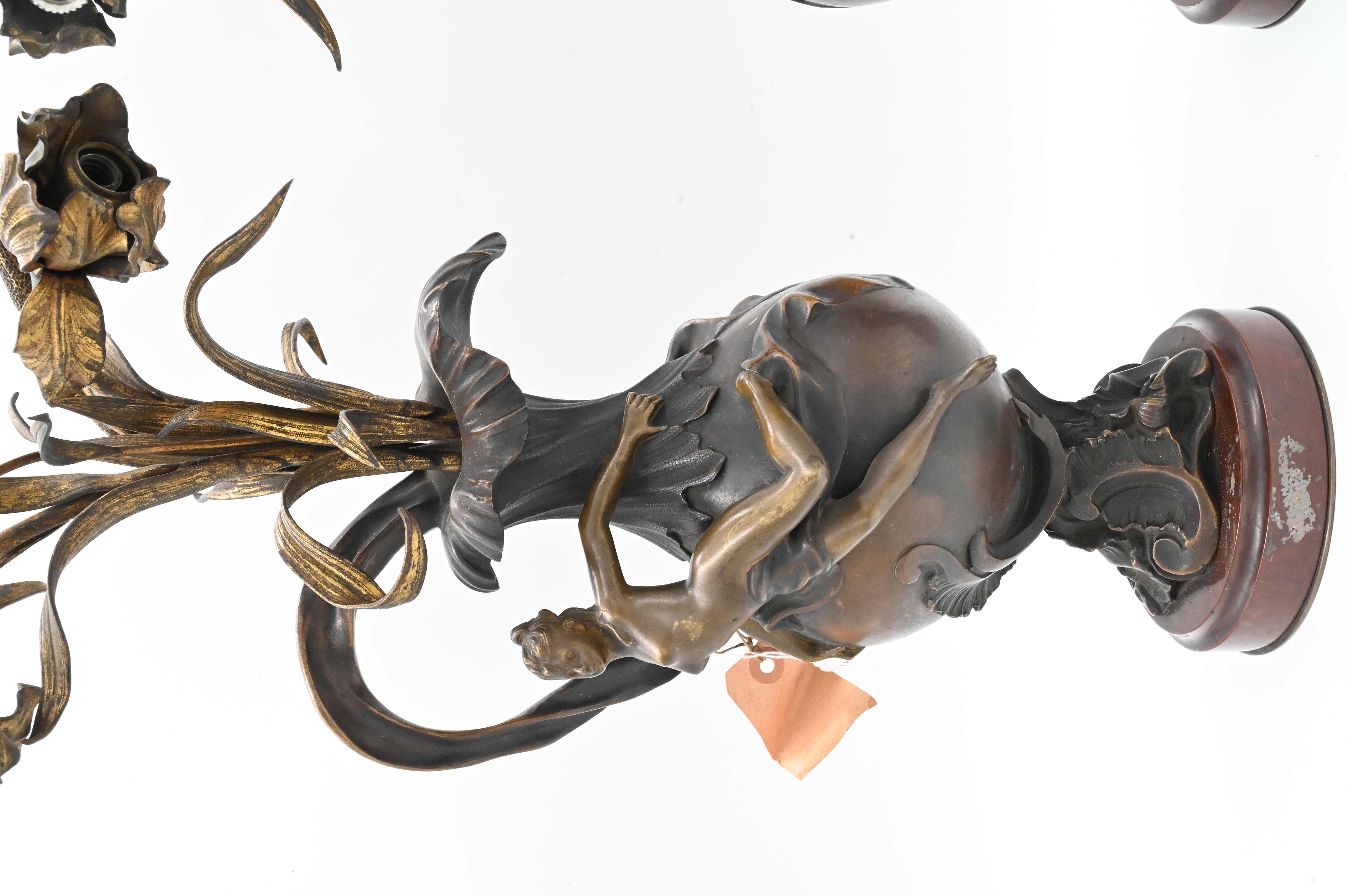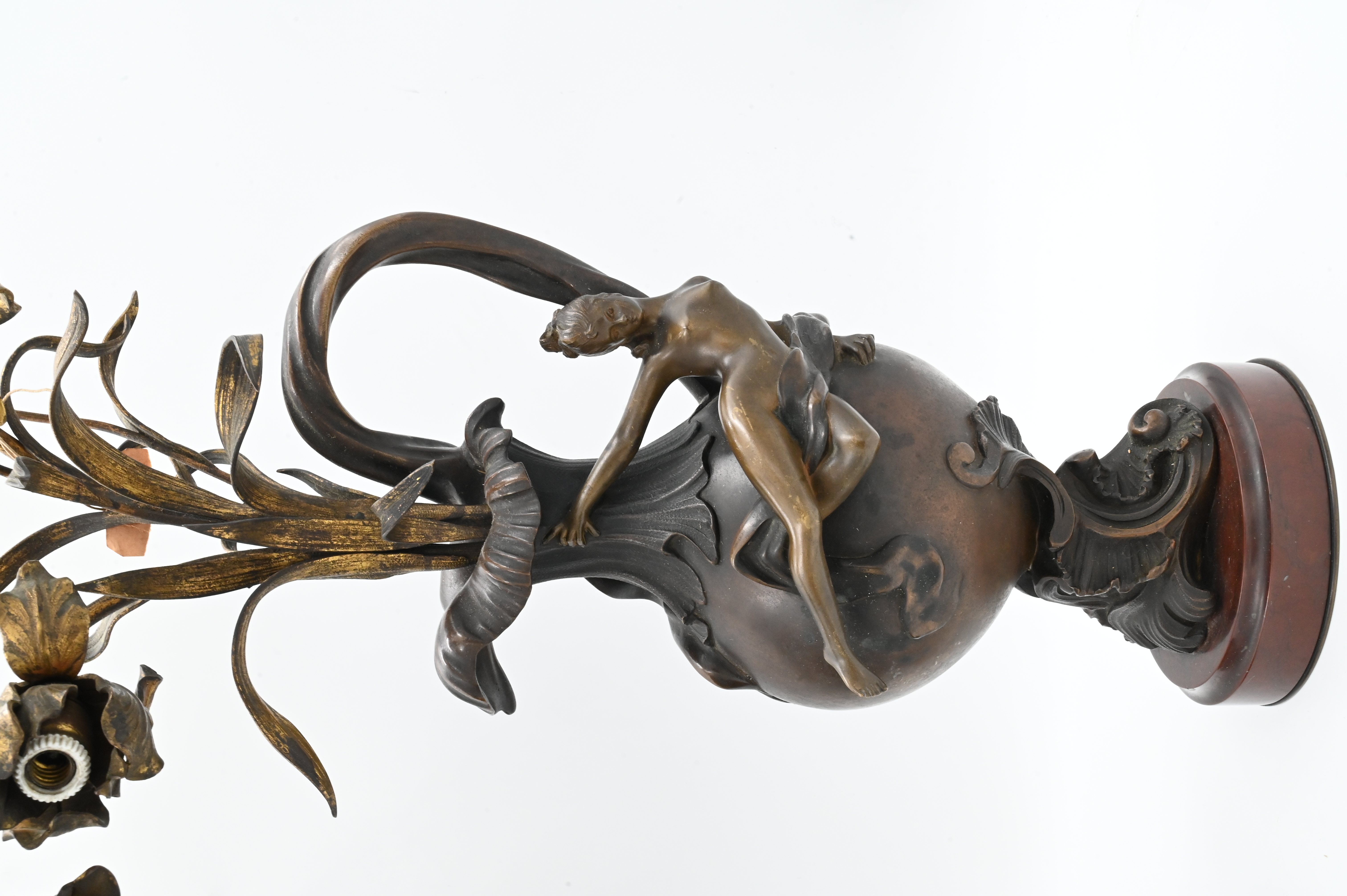 Vase form having gilt flowers sprouting with nude nymphs on the outside