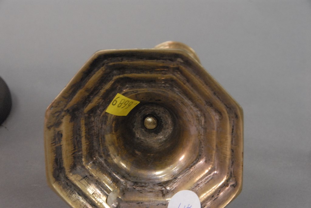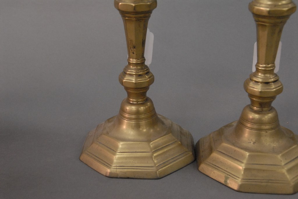 Pair of Continental brass candlesticks, 18th century. ht. 10in.