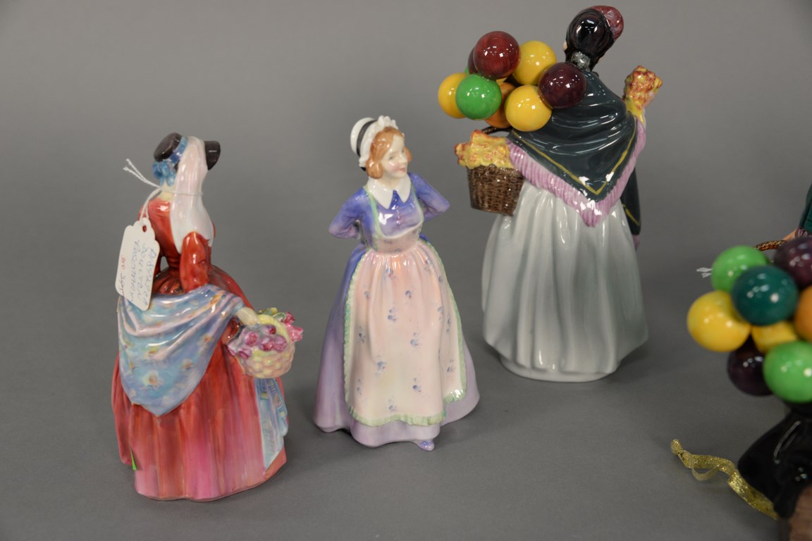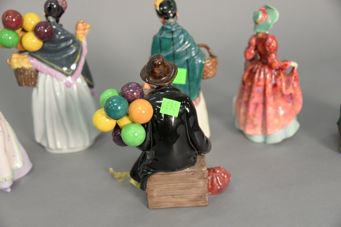 Seven Royal Doulton figures. ht. 7 in. to 9 in.