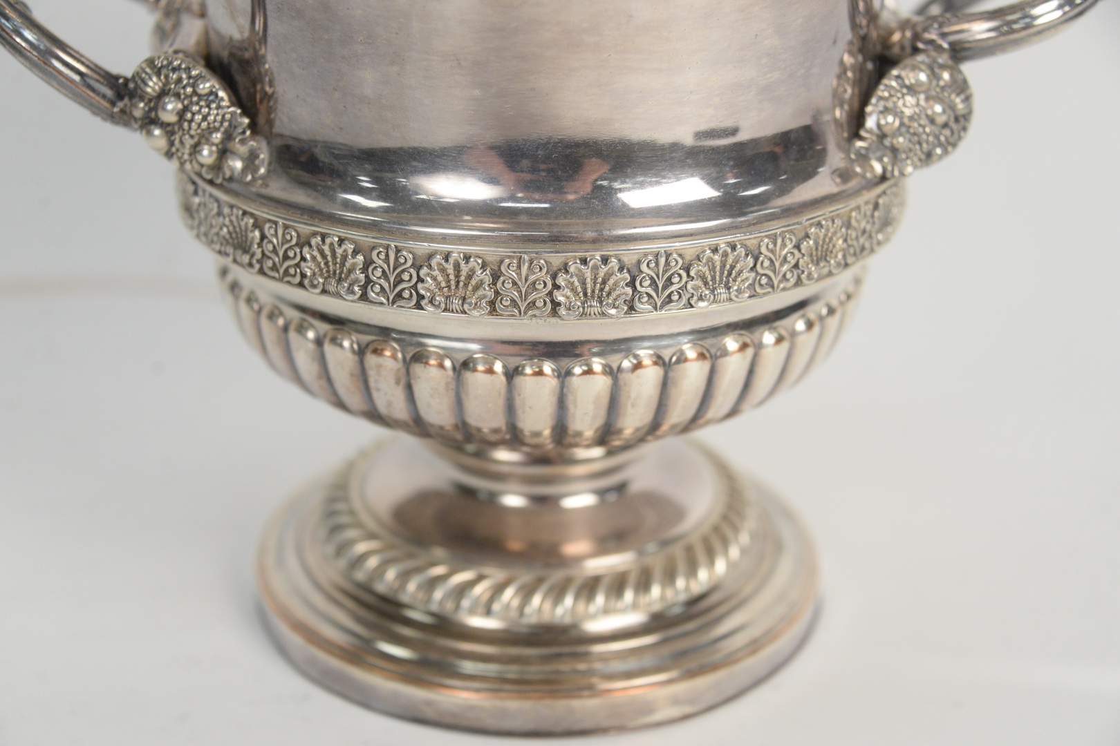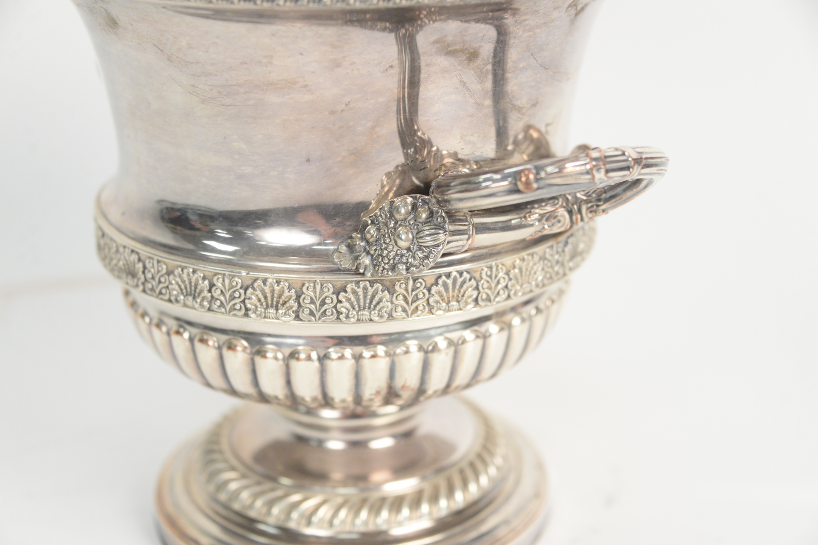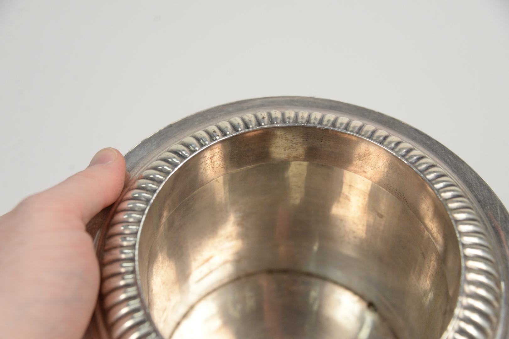 Lot 39: Sheffield Silver Plated Wine Cooler with two handles, height 9 1/2 inches. Provenance: From a Newport, Rhode Island historic home, in the same family since 1761.