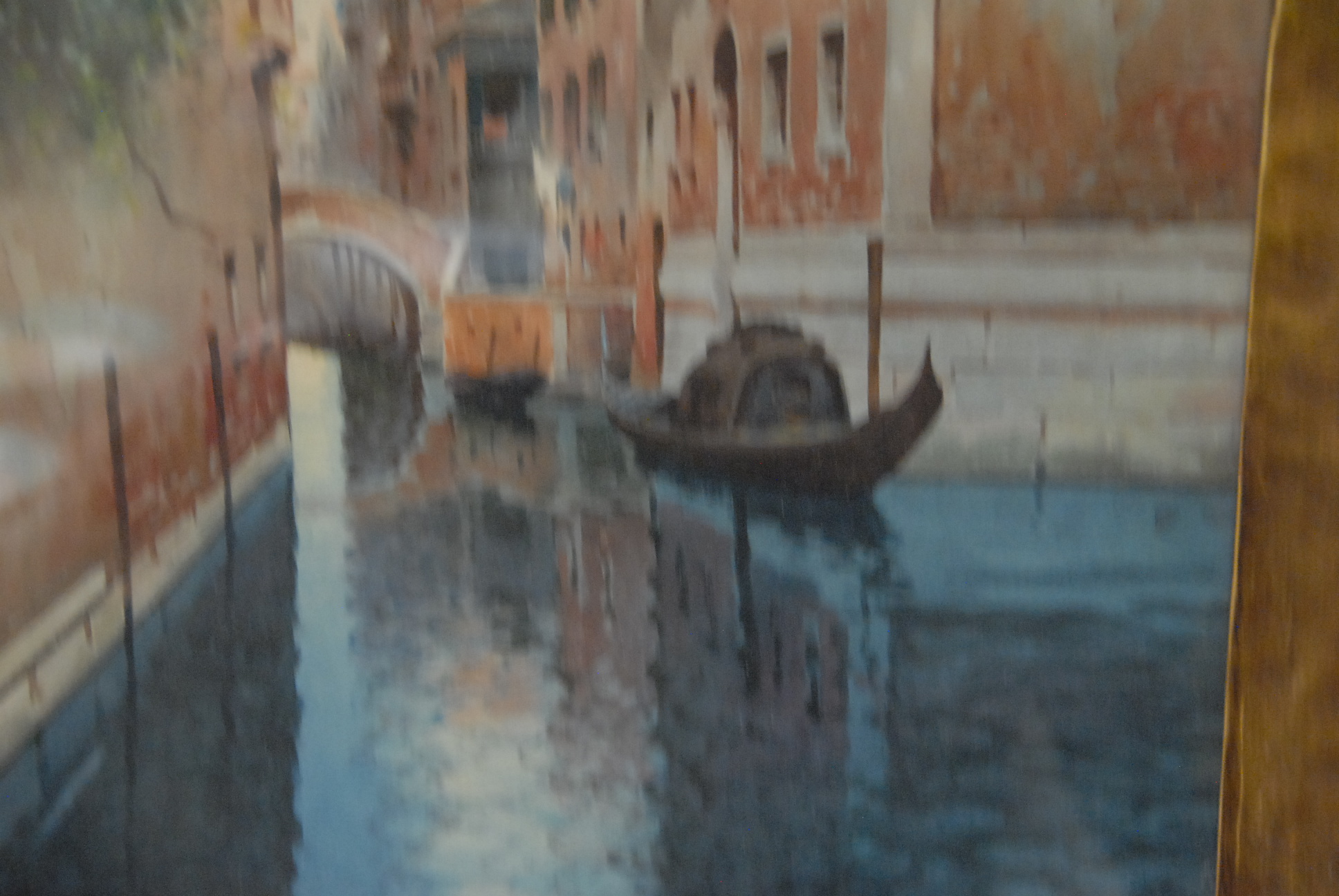 Watercolor of Italian canal, signed indistinctly lower right. 26 1/2 x 15