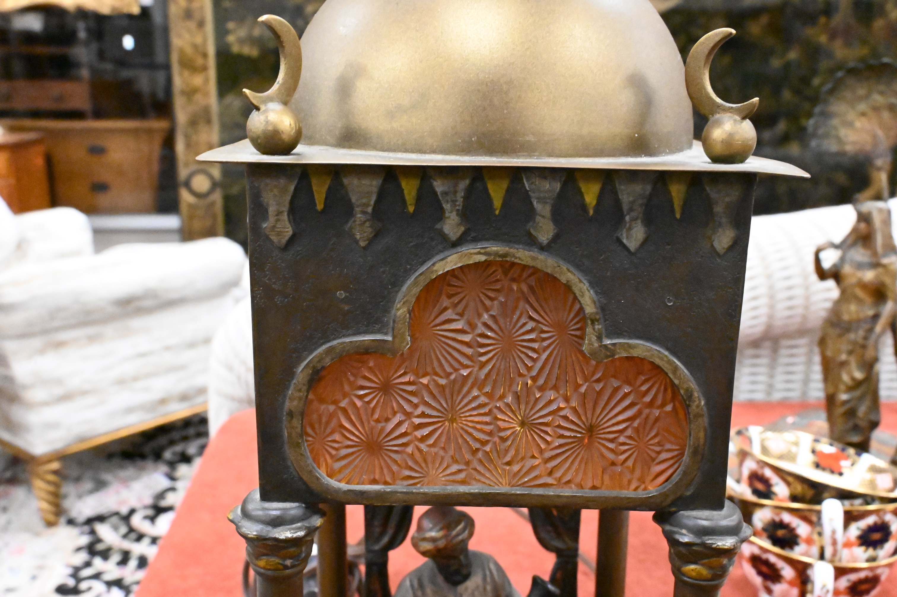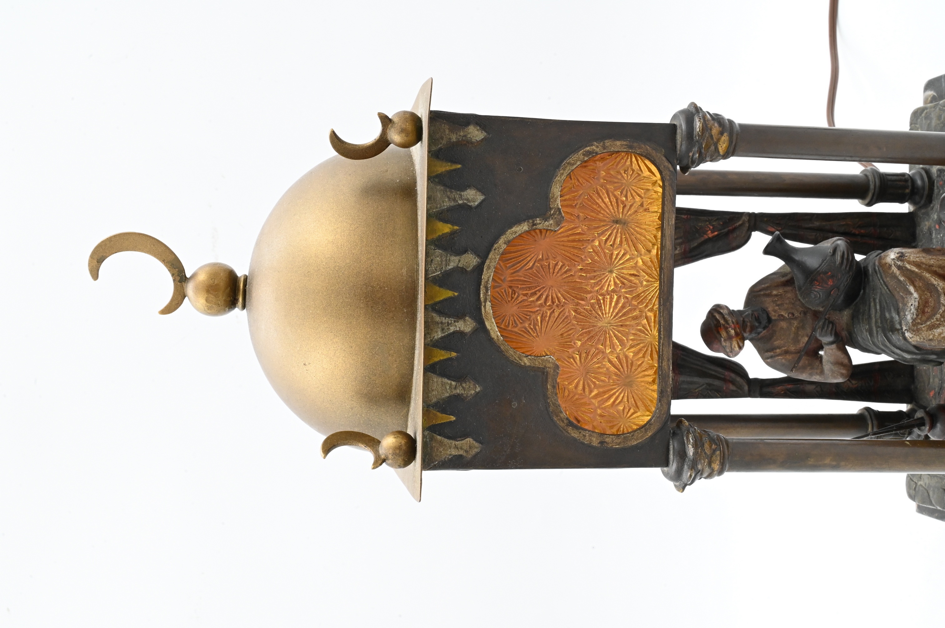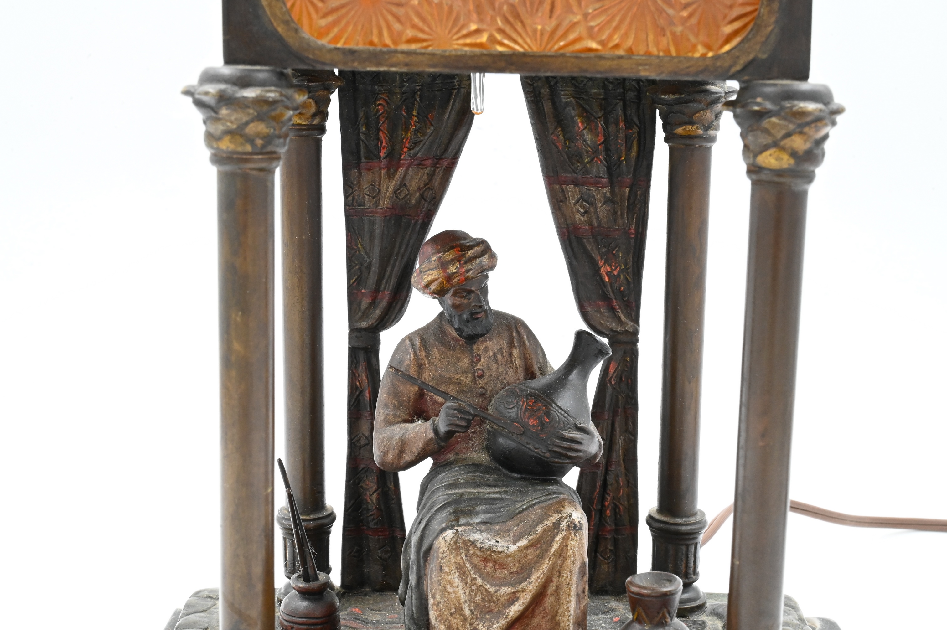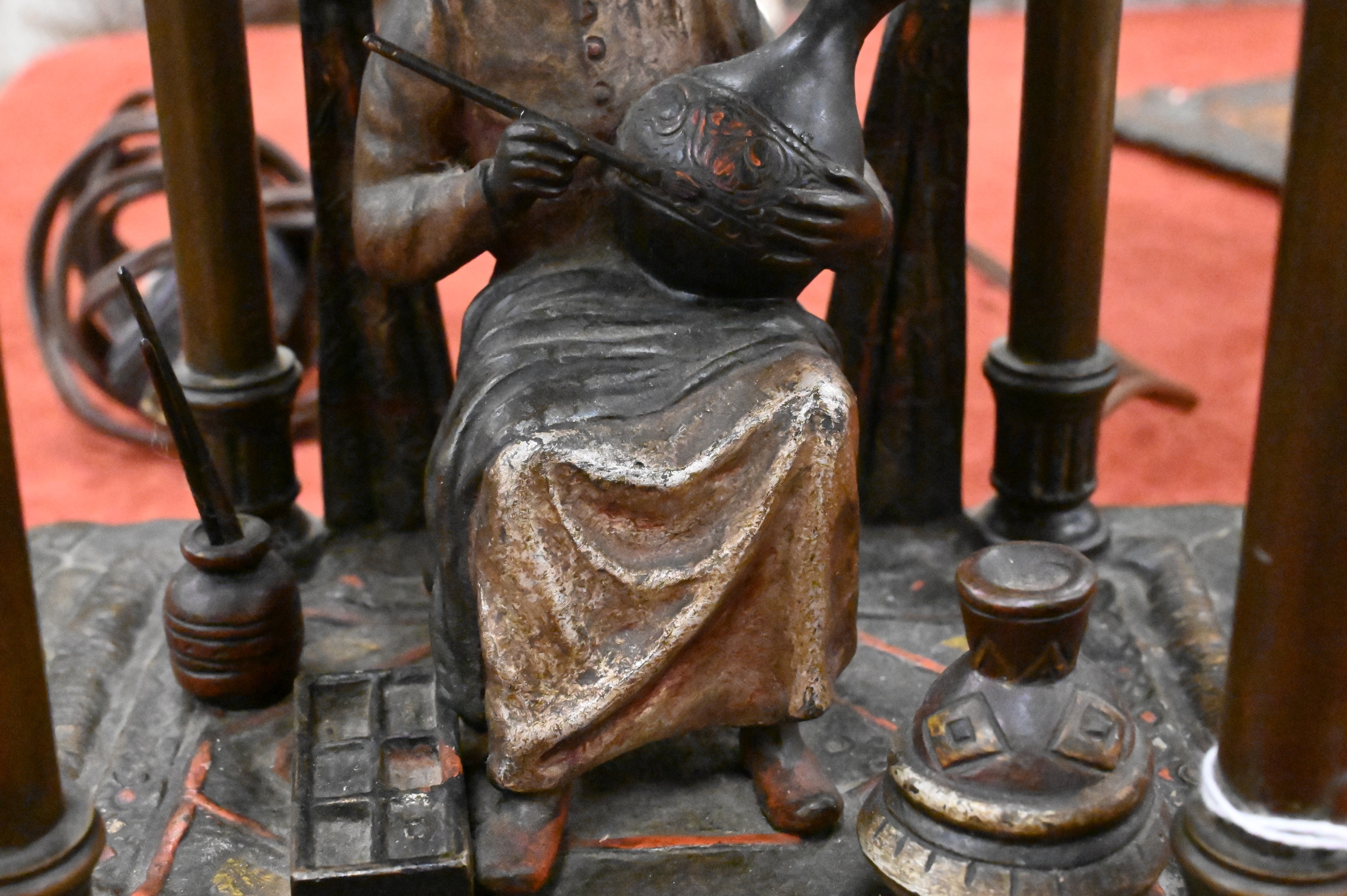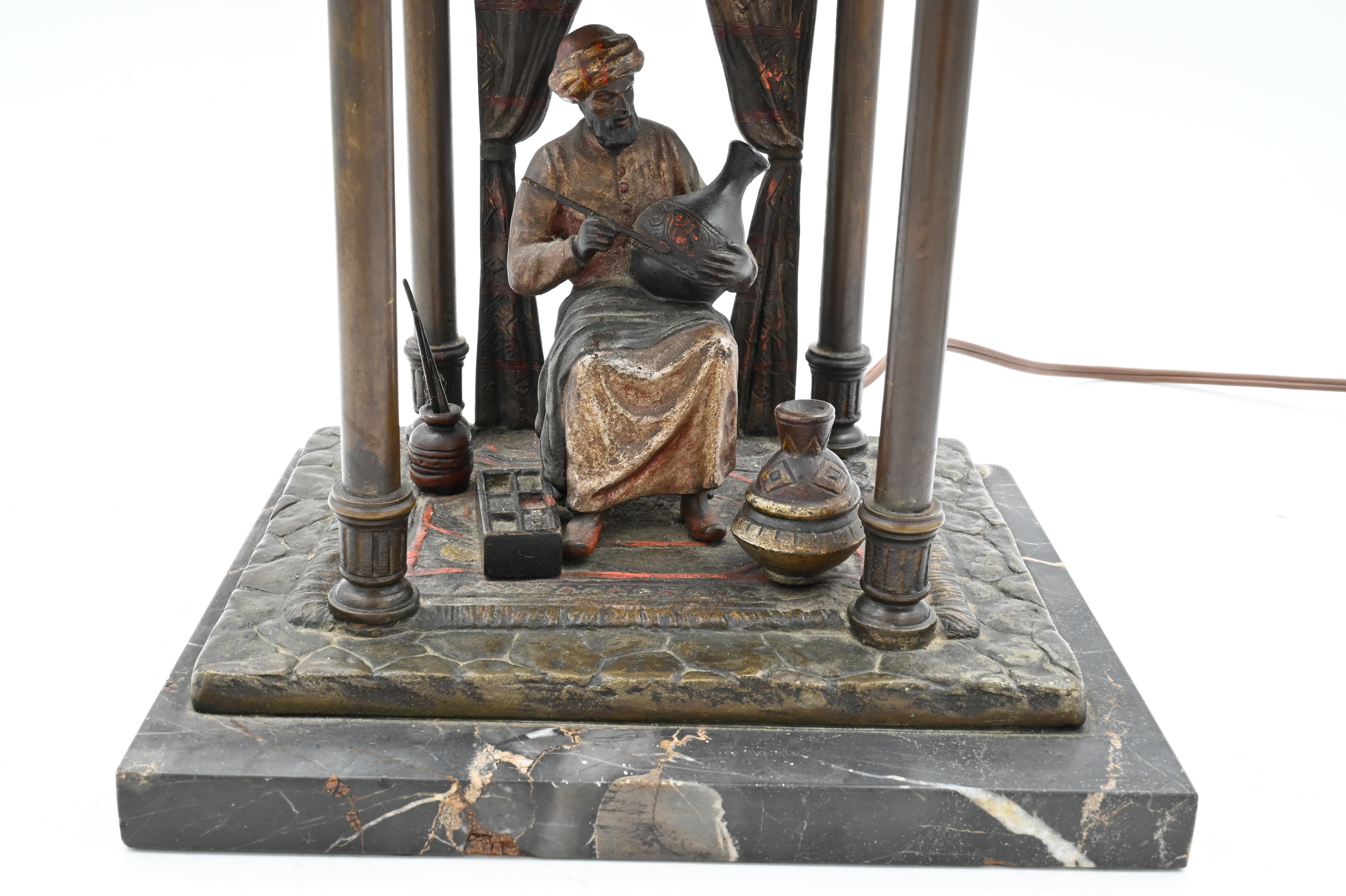 Austrian cold painted bronze table lamp of a bearded man painting vessels on marble base