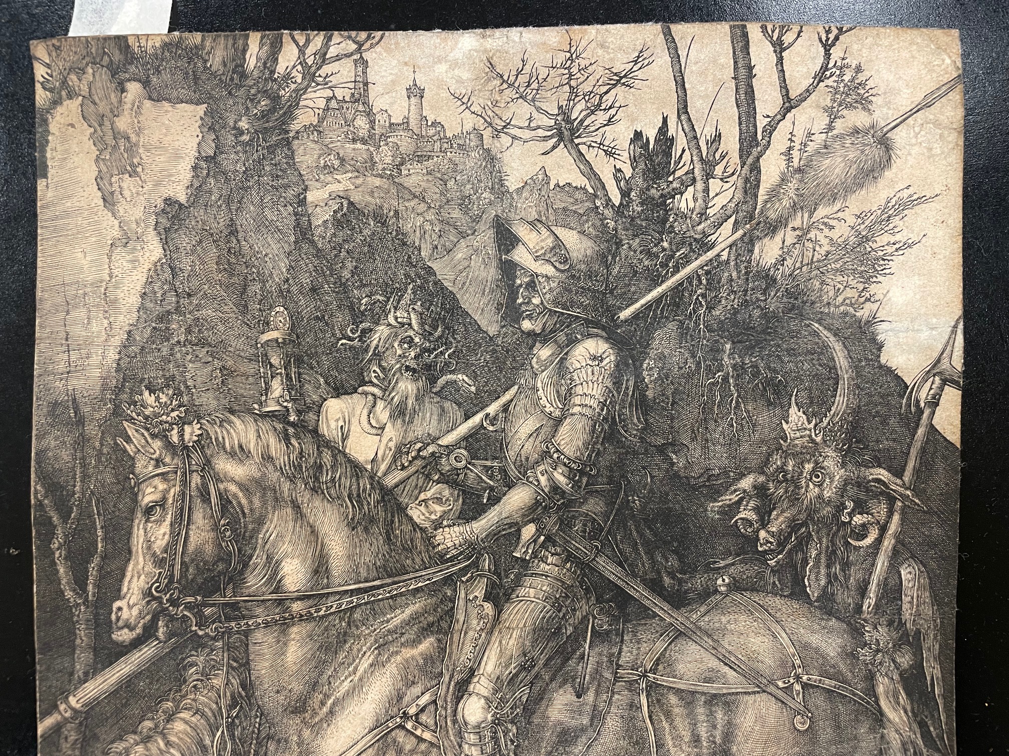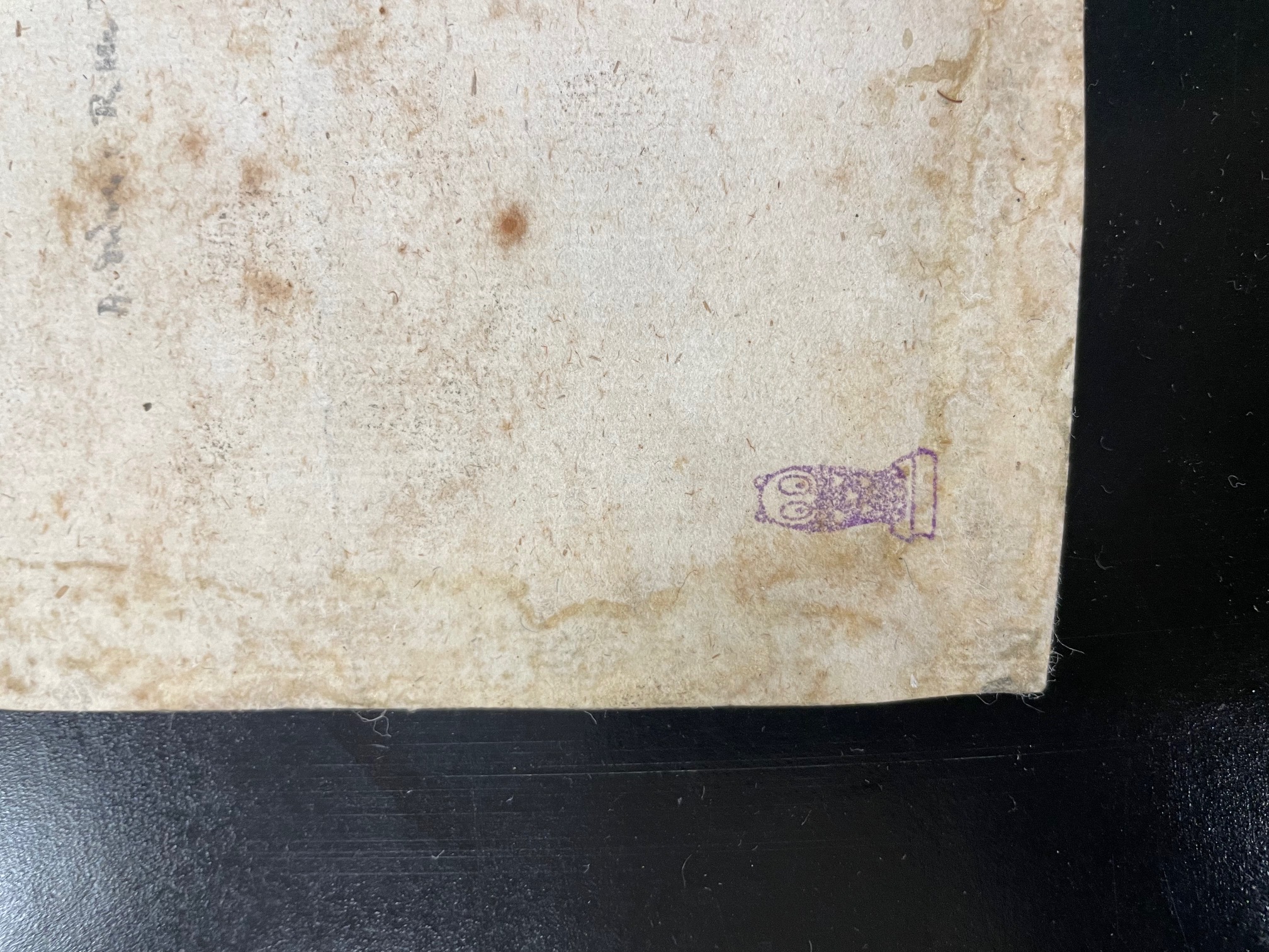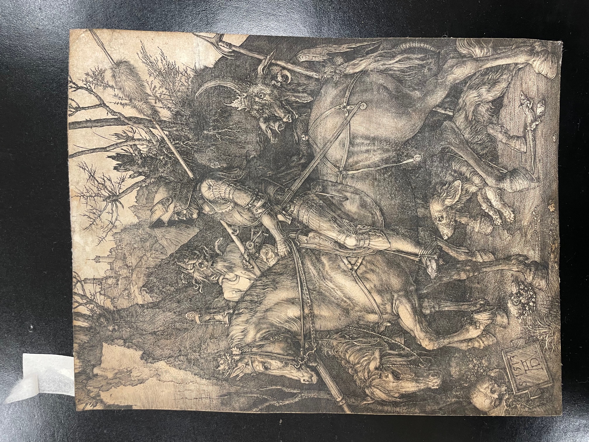 Condition: Engraving laid on paper, repairs throughout, crease marks, repaired tears, trimmed border, was folded in eight parts with repair folds, in as is condition please refer to photos