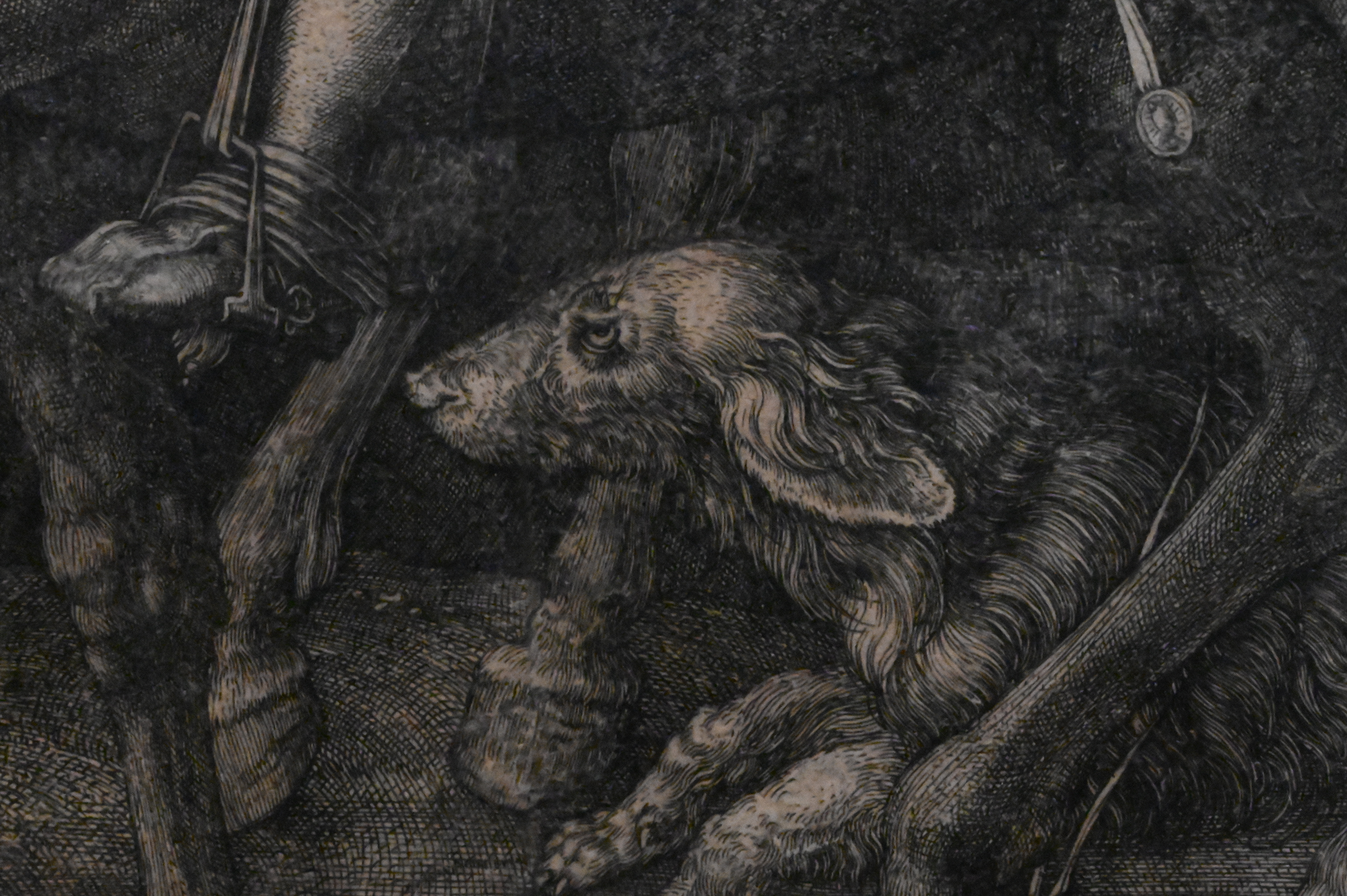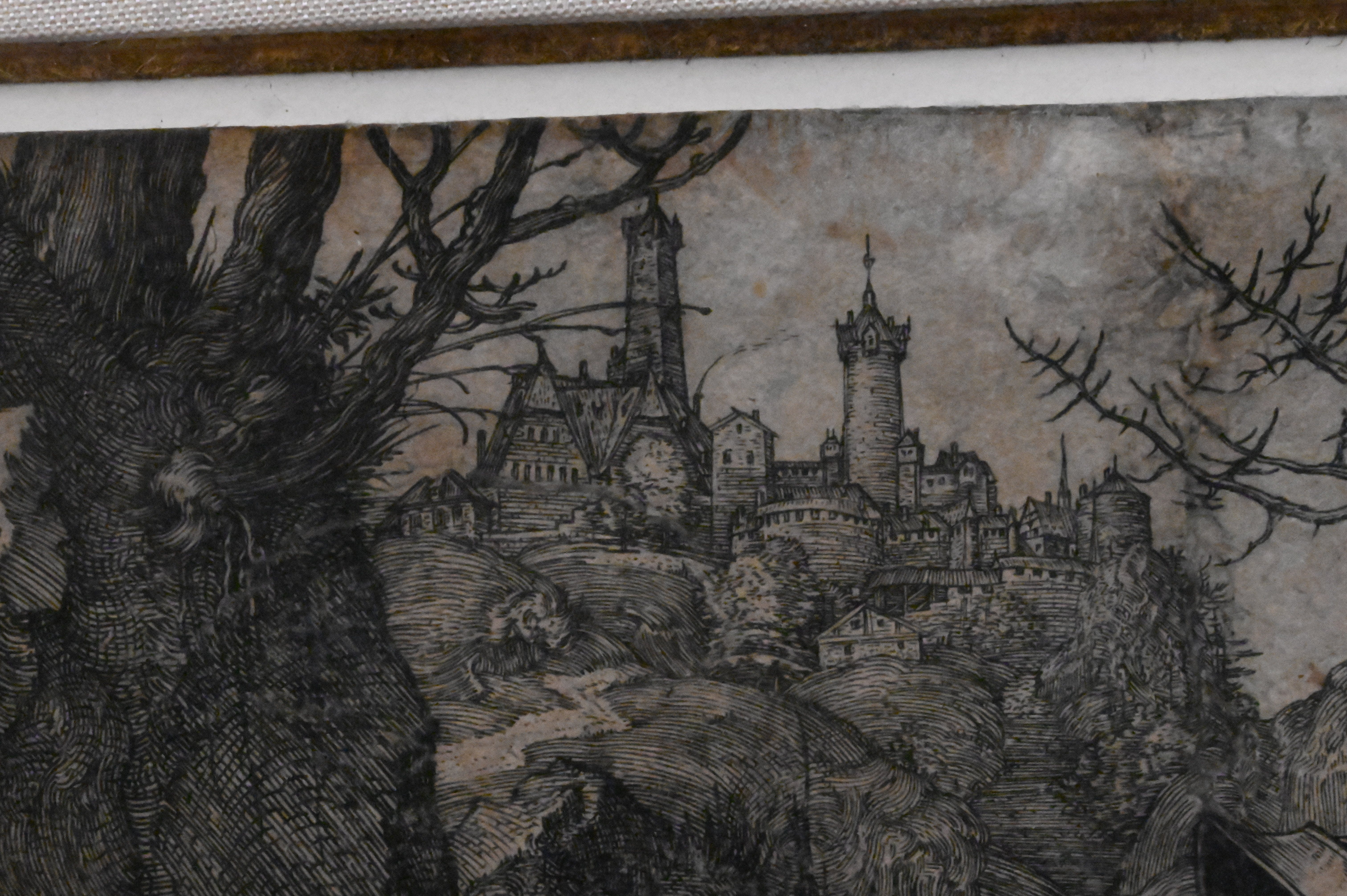 Condition: Engraving laid on paper, repairs throughout, crease marks, repaired tears, trimmed border, was folded in eight parts with repair folds, in as is condition please refer to photos