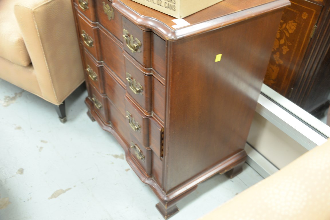 Custom Mahogany four drawer chest block front, ht. 29 1/2 in. wd. 27 1/2 in.