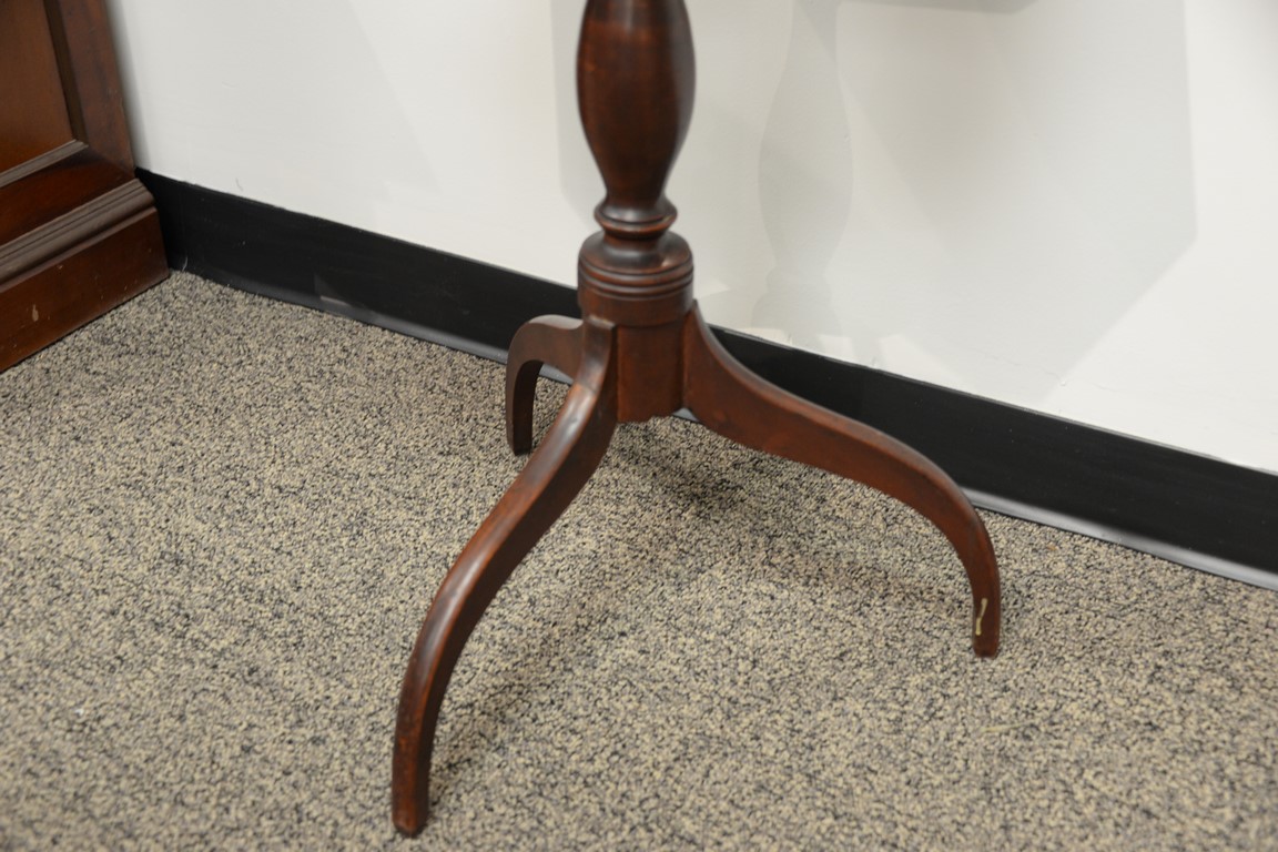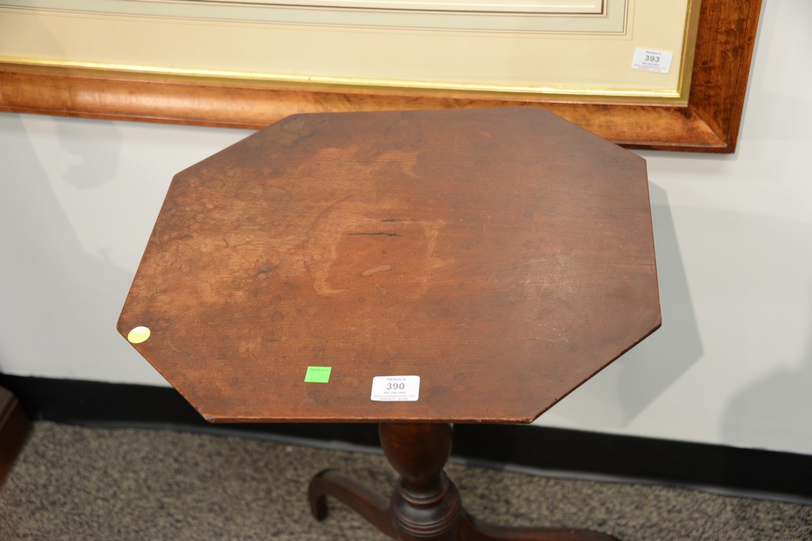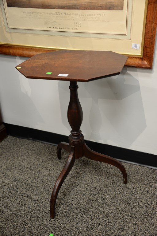 Lot 390: Federal eight sided candlestand on turned shaft set on tripod base, traces of original red paint, two initials underside RK, circa…