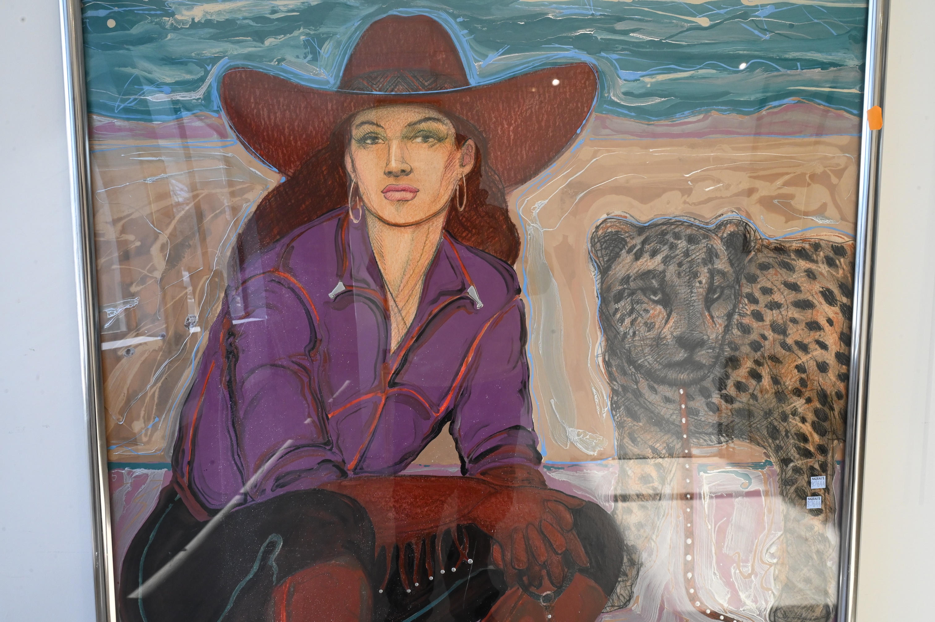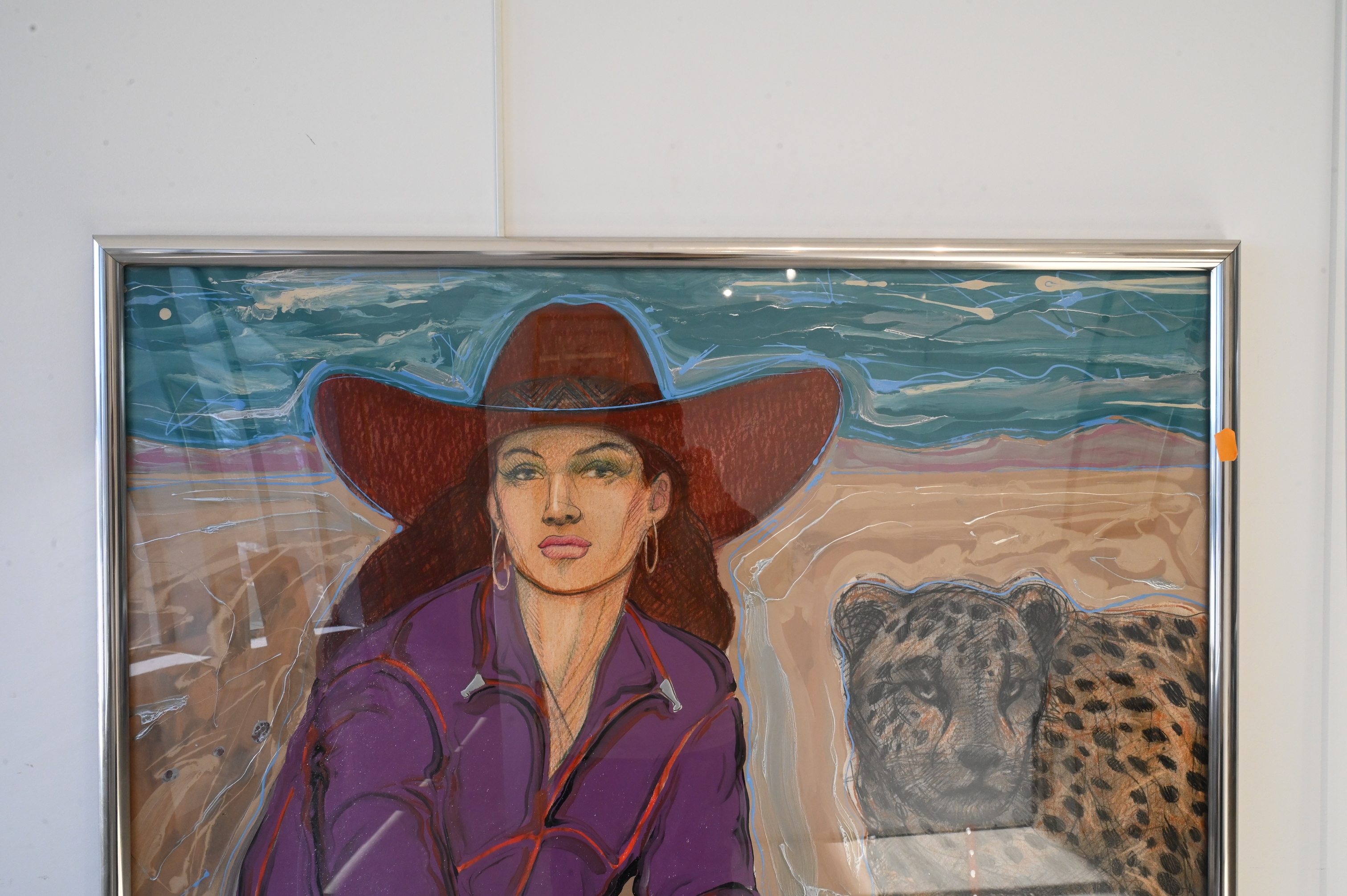 “Silence Except for the Wind” Cowgirl and leopard in a desert landscape
