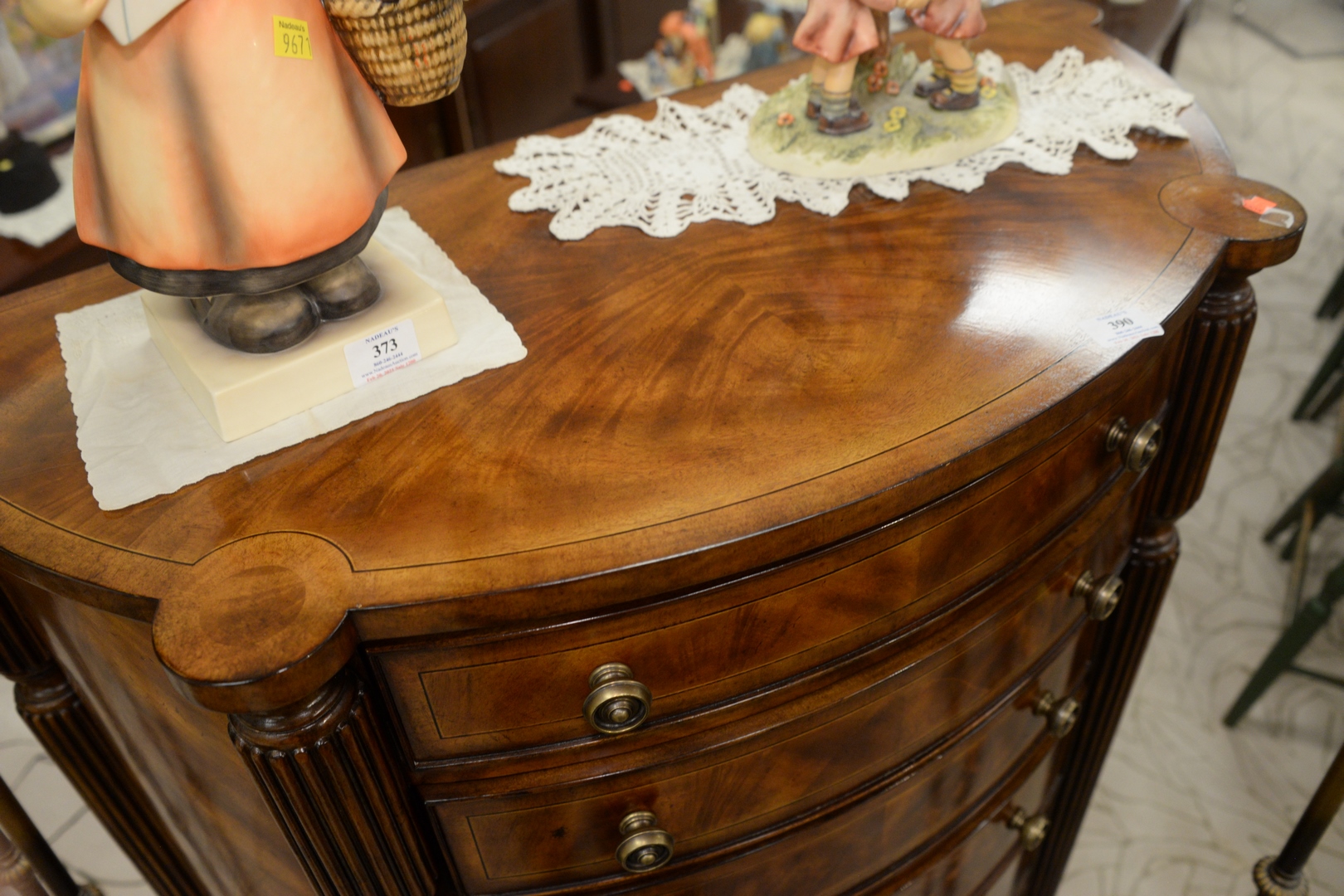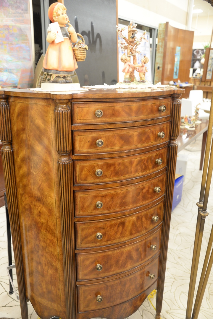Lot 390: Theodore Alexander Semanier, with seven bowed front drawers, height 56 1/2 inches, width 38 inches, depth 17 inches.