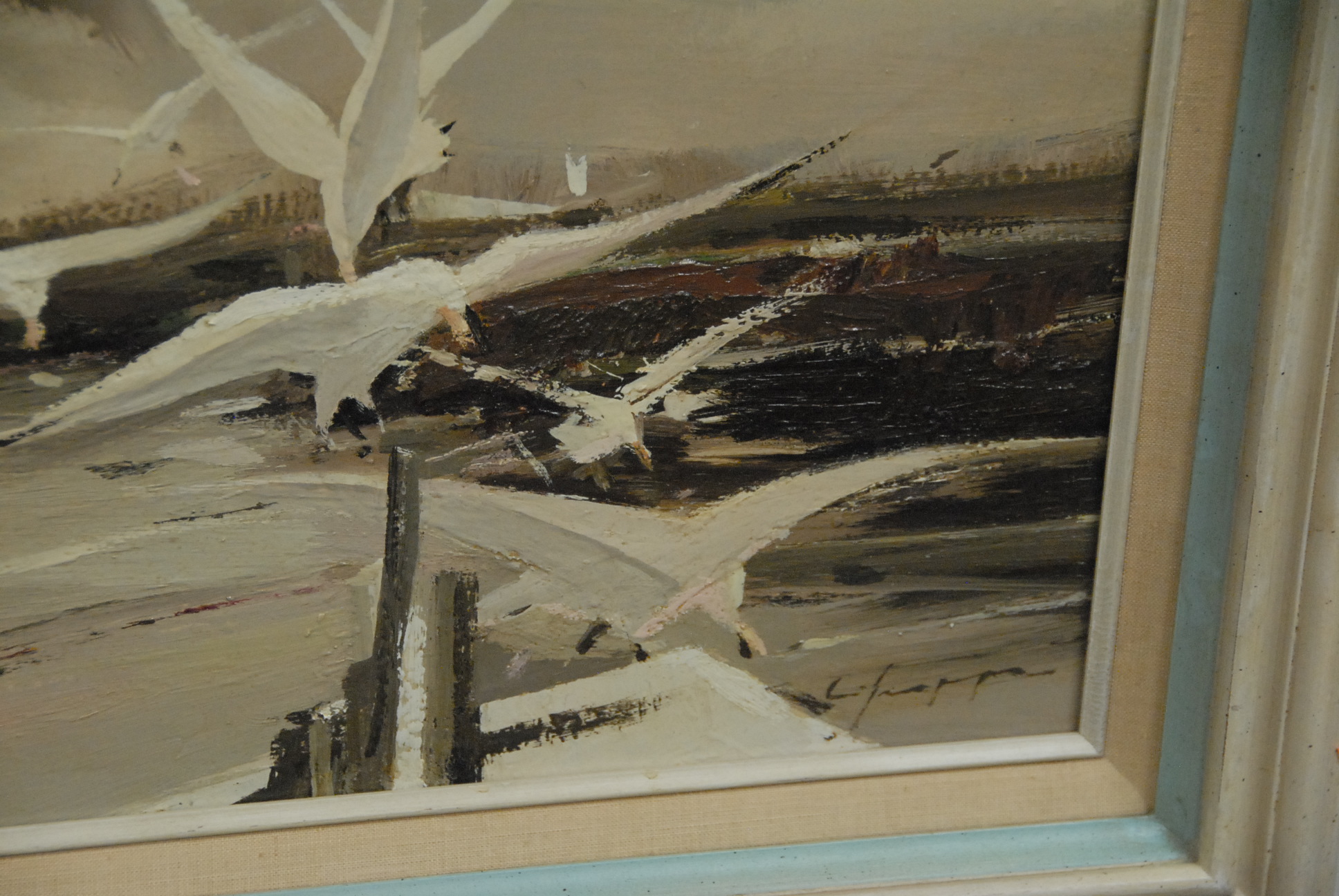 Charles Gruppe oil on board Gulls signed lower right C. Gruppe, 18 X 24.