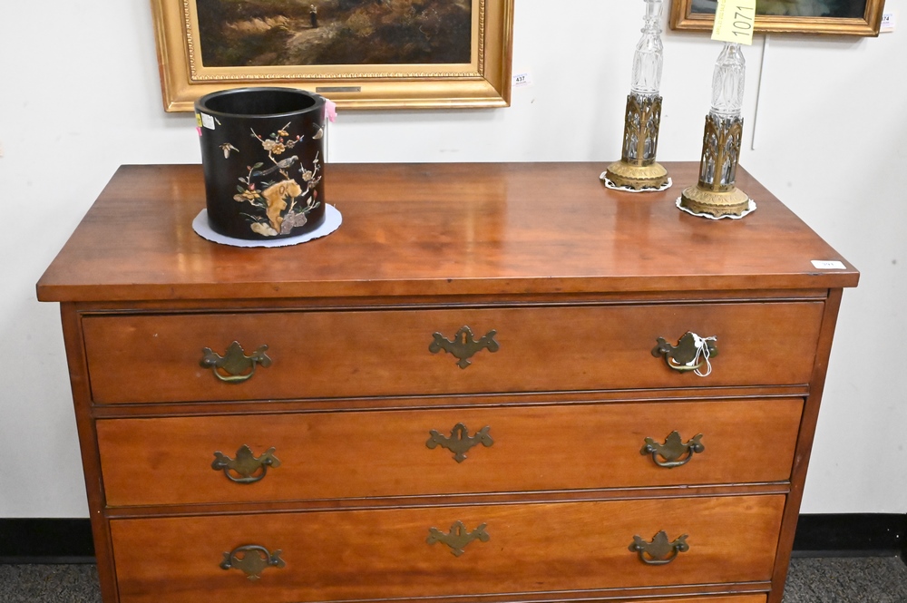 Lot 391: Chippendale Chest, on base, having four drawers on separate base with bold ogee feet and large spurs, circa 1760, (originally a base for chest on chest), height 32 1/2 inches, width 38 1/2 inches. Provenance: Estate of Florence Yannios, Waterfront Home, Guilford, CT.