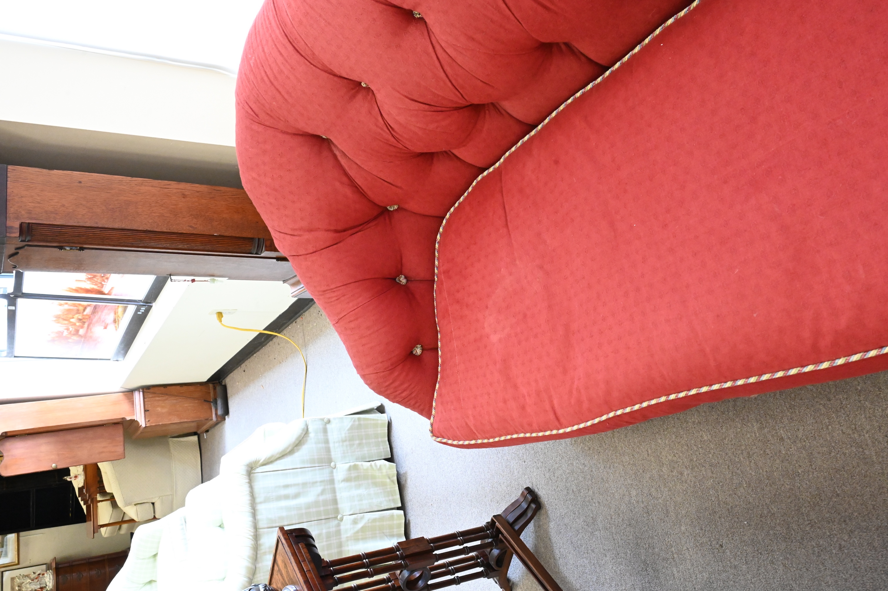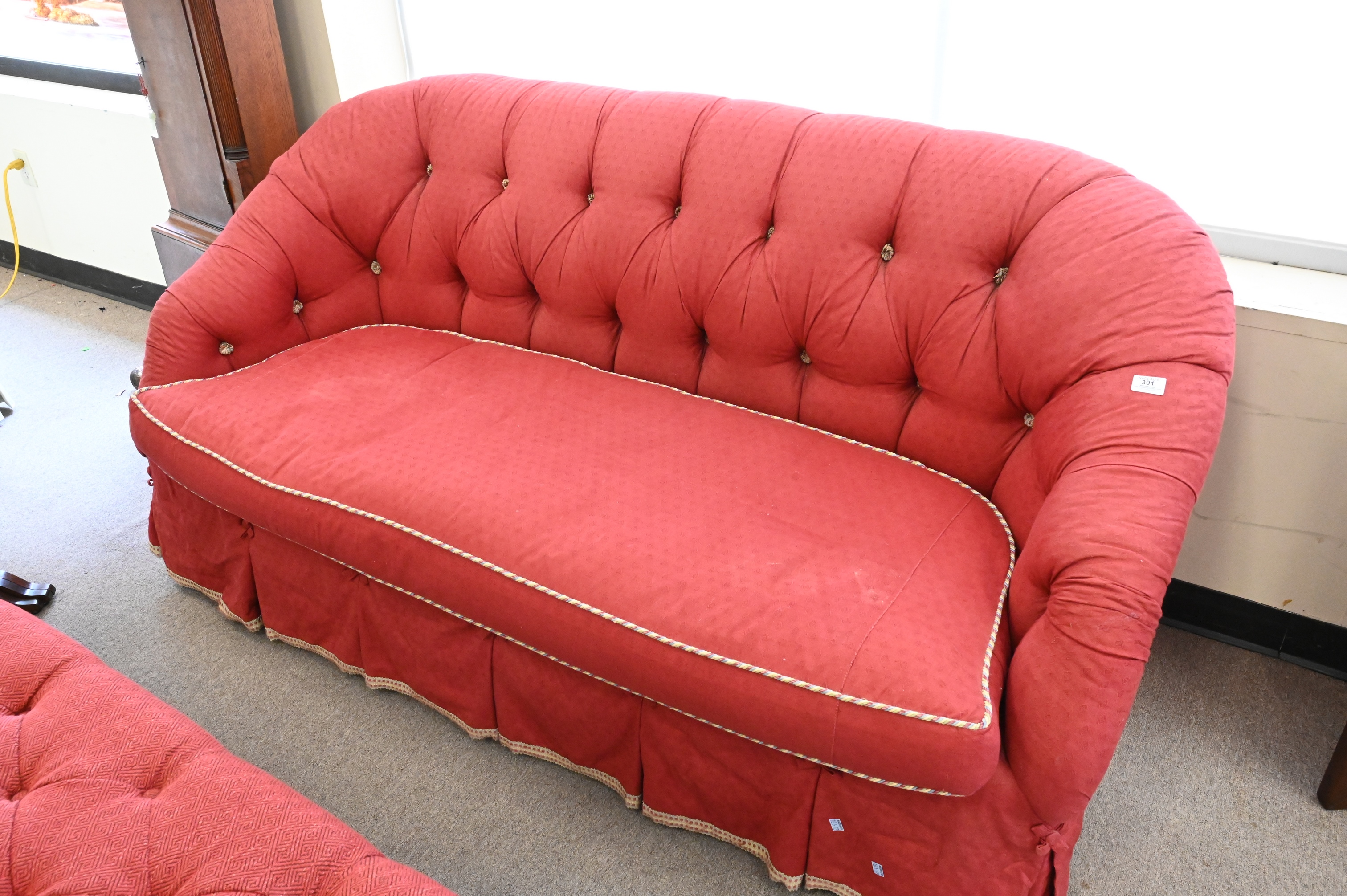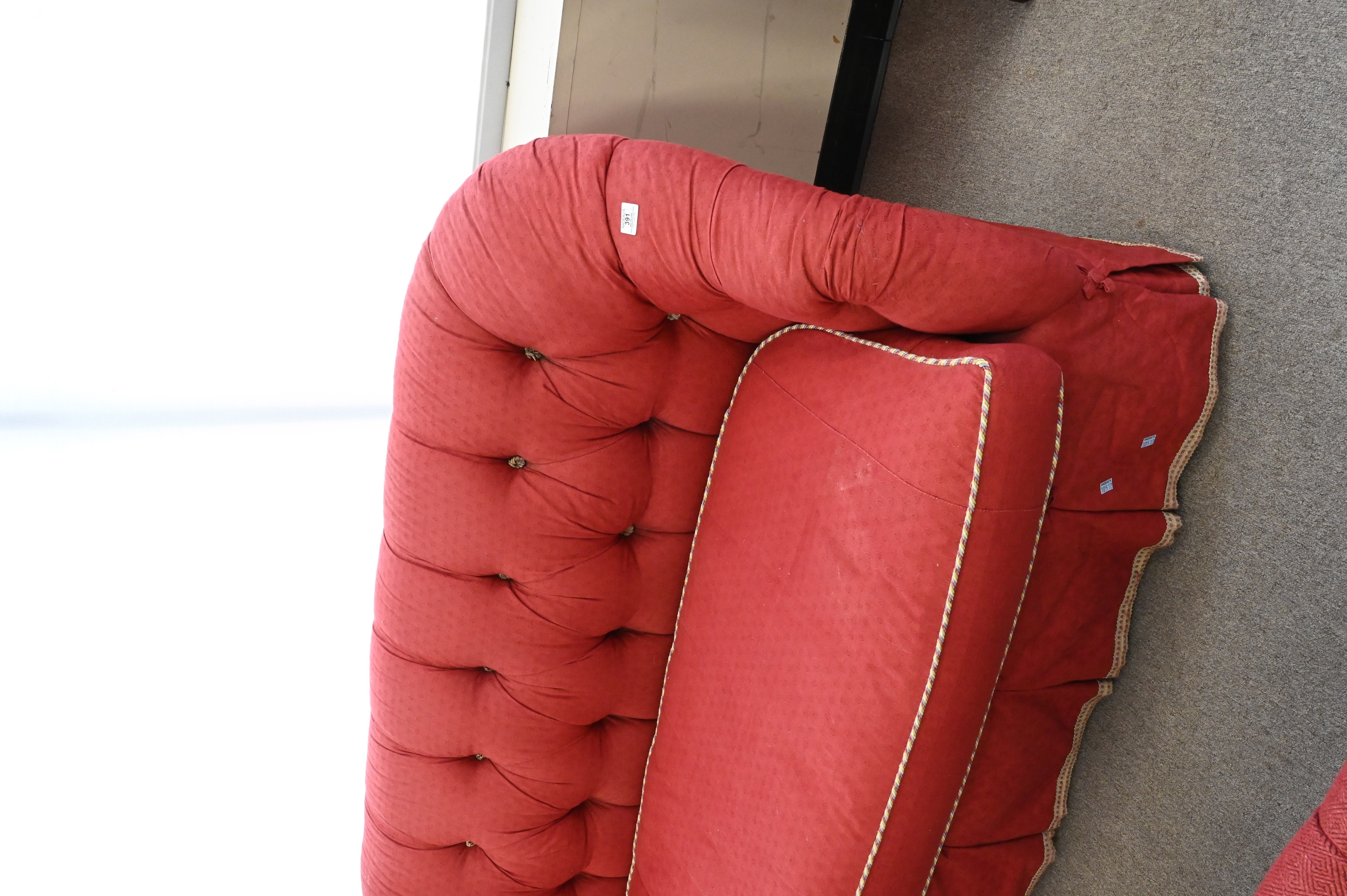 Lot 391: Custom Upholstered Loveseat having Tufted Back