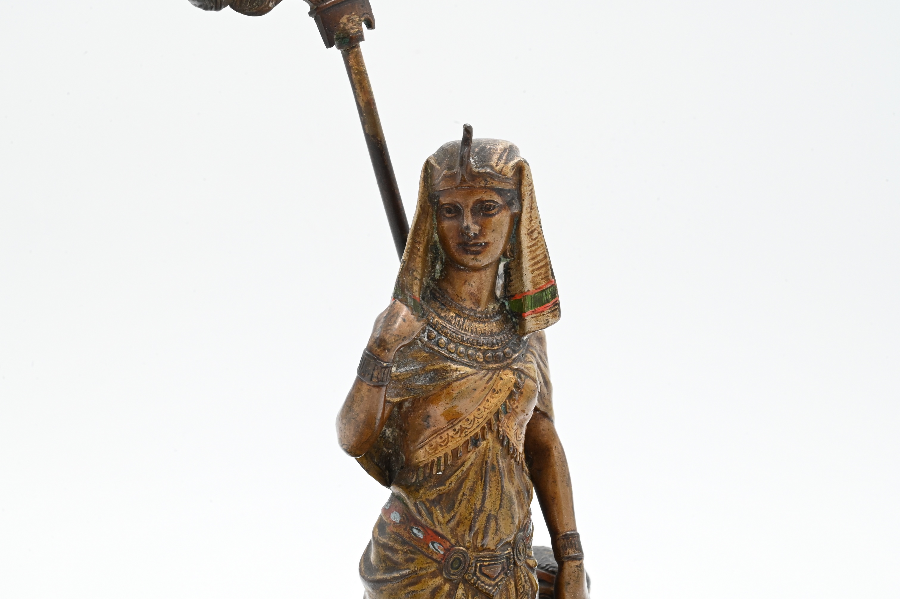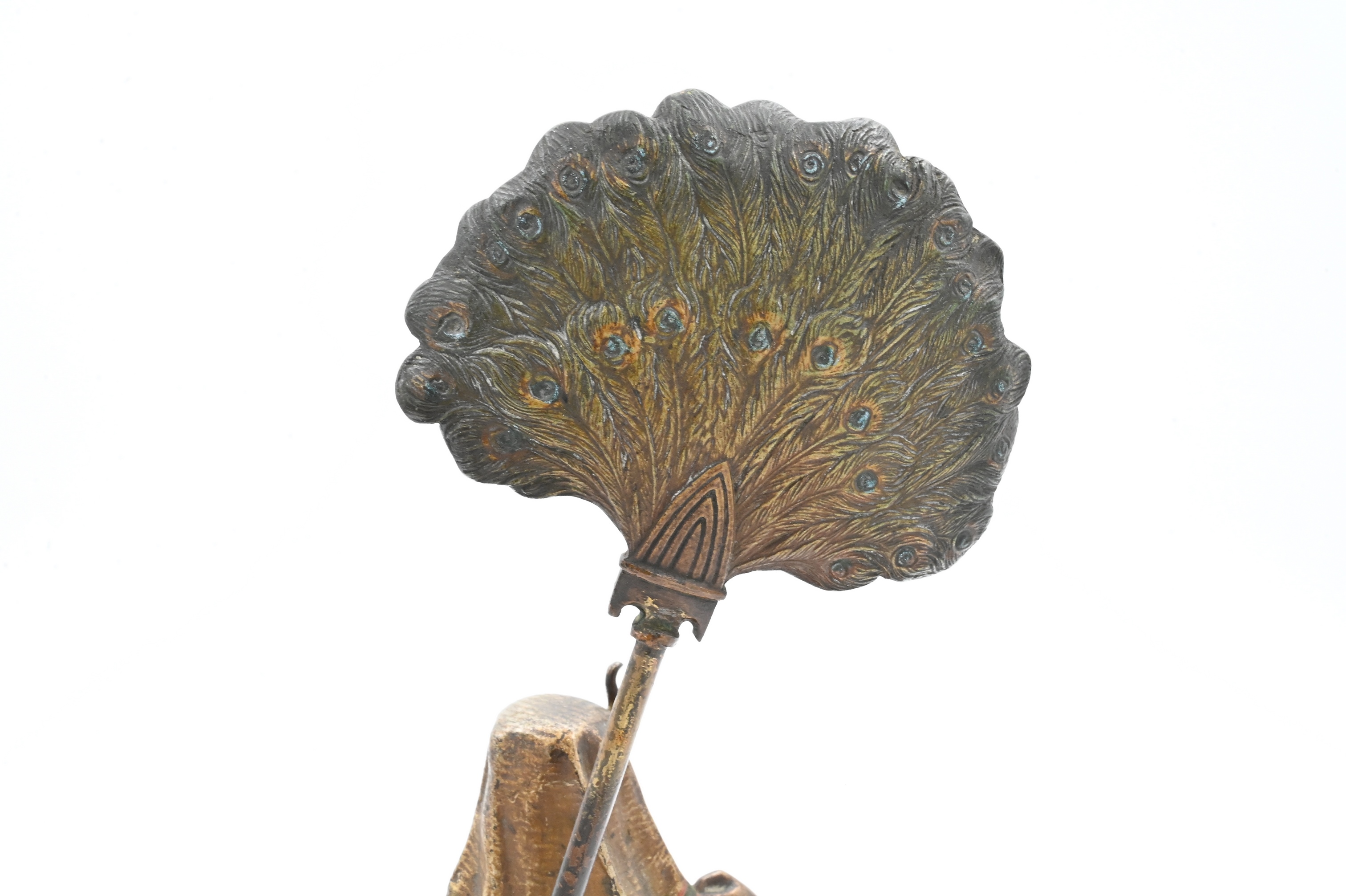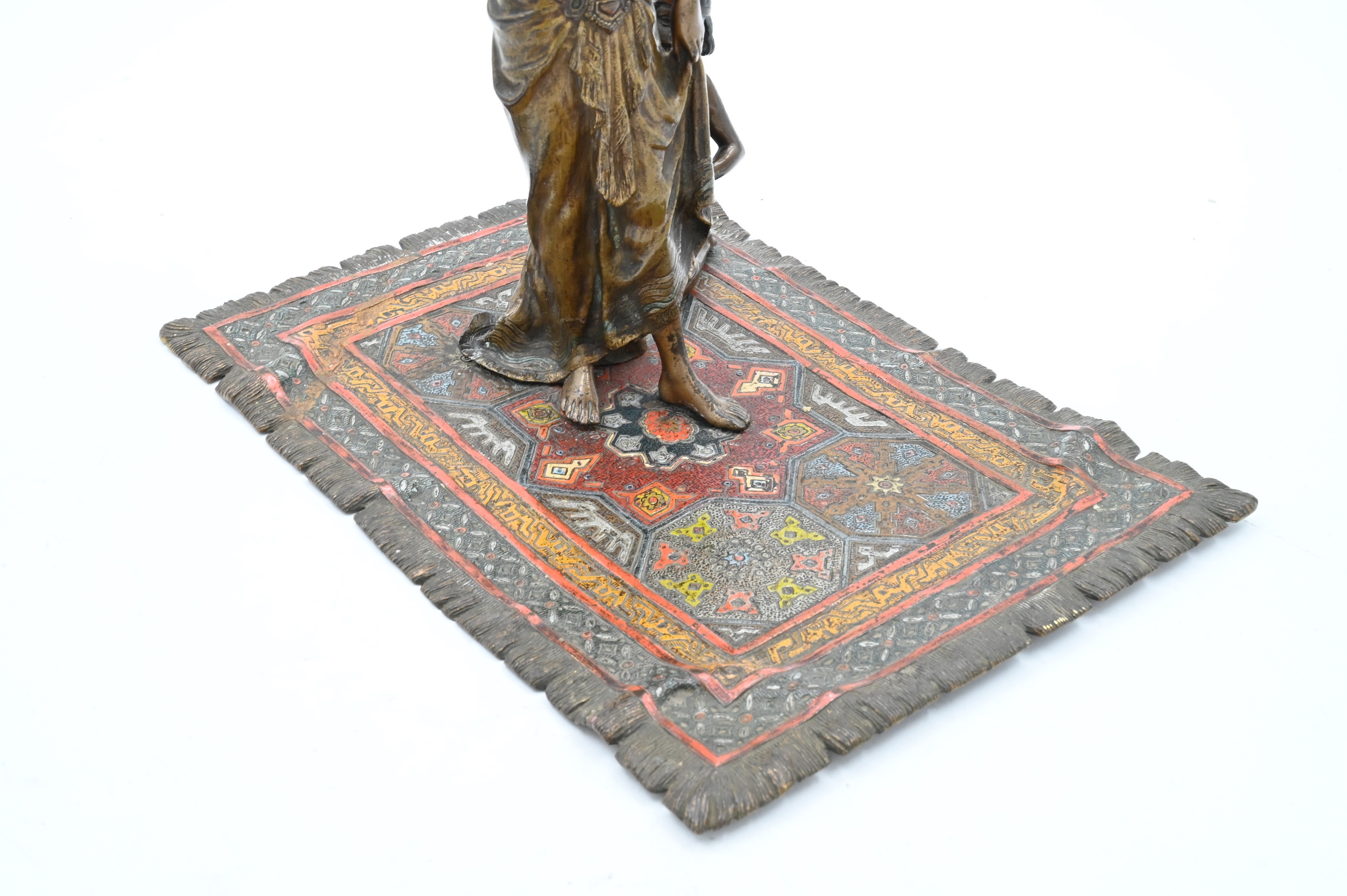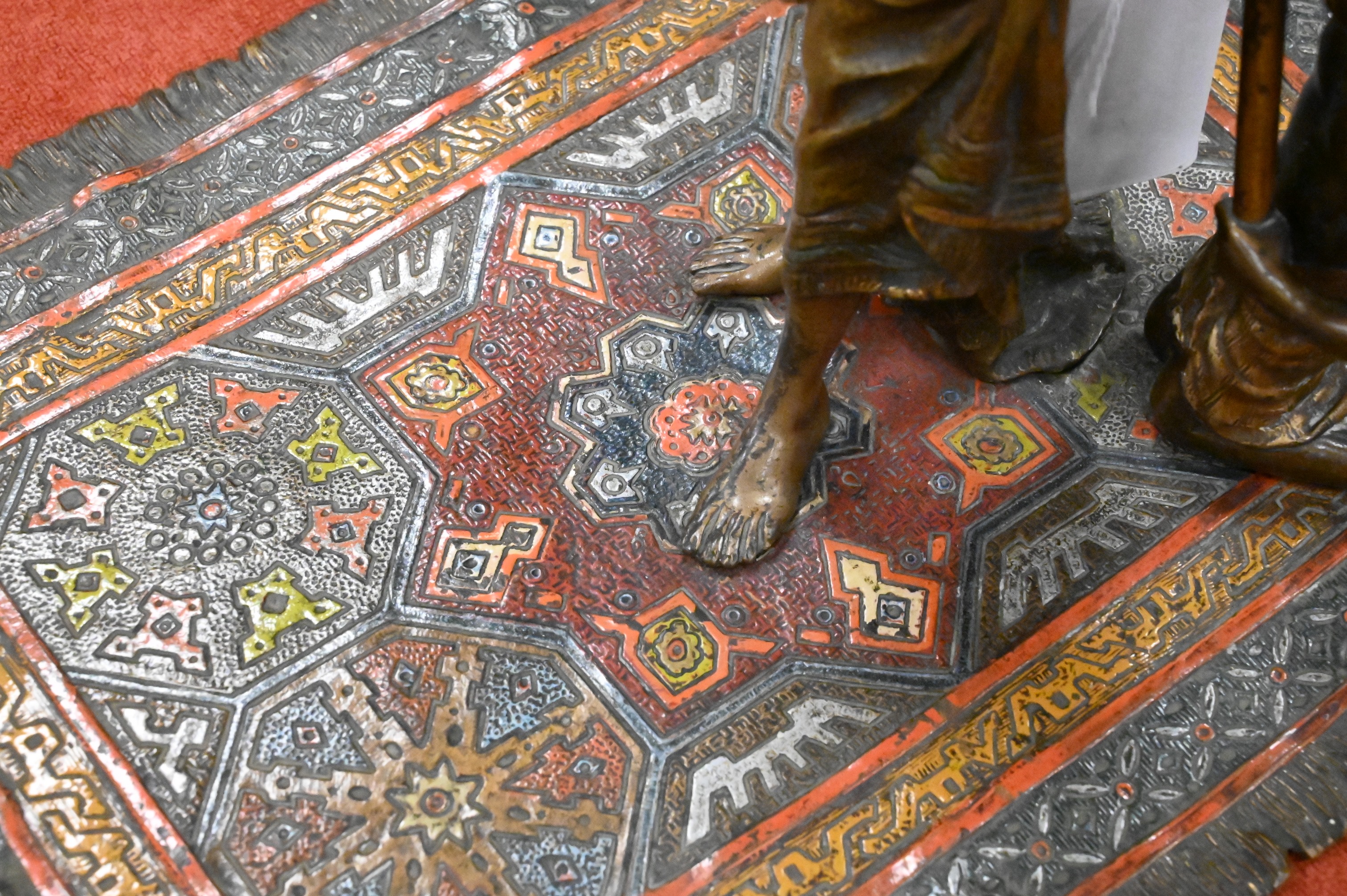 Cold painted bronze of a standing maiden with a kneeling child at her side