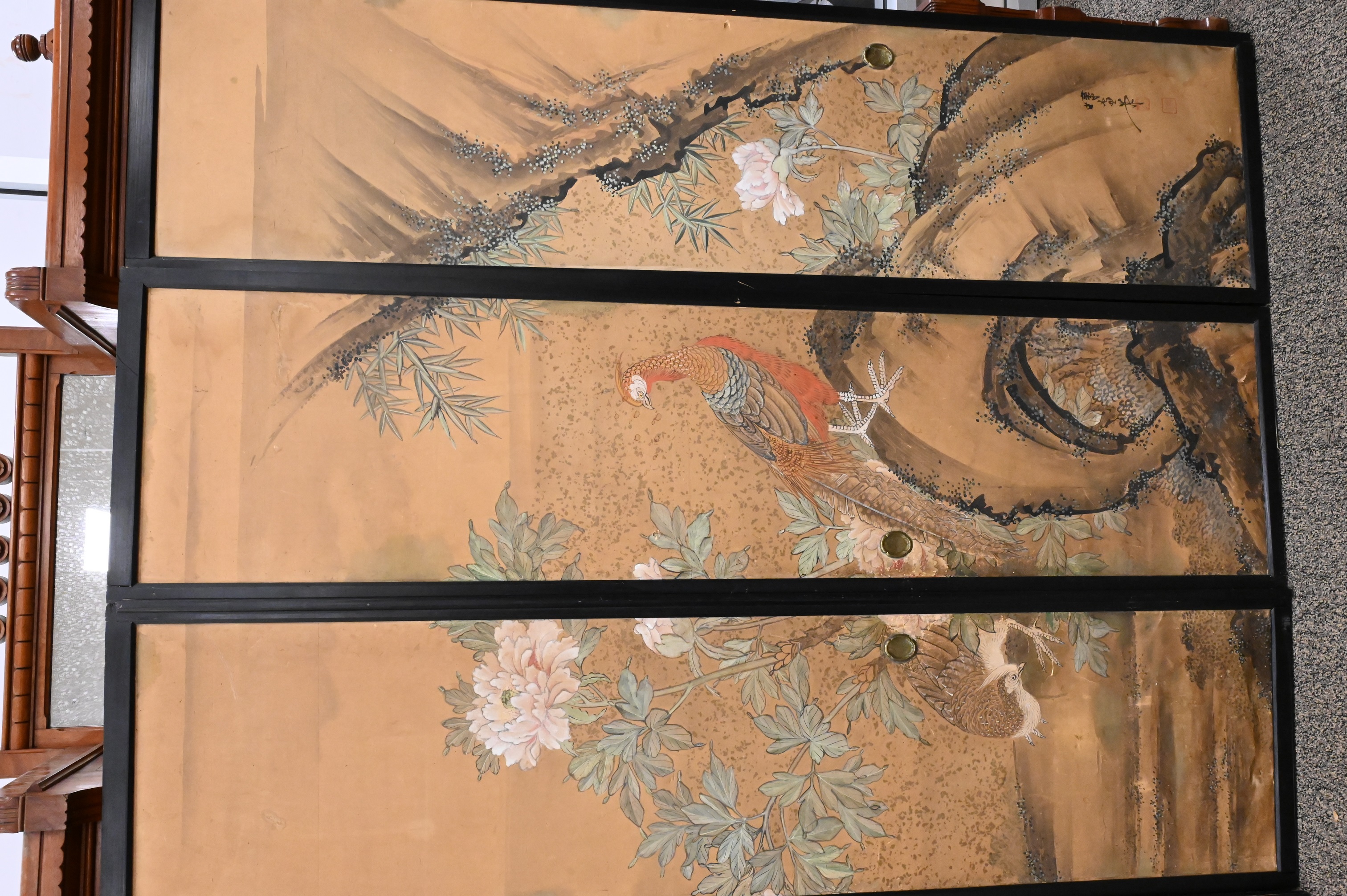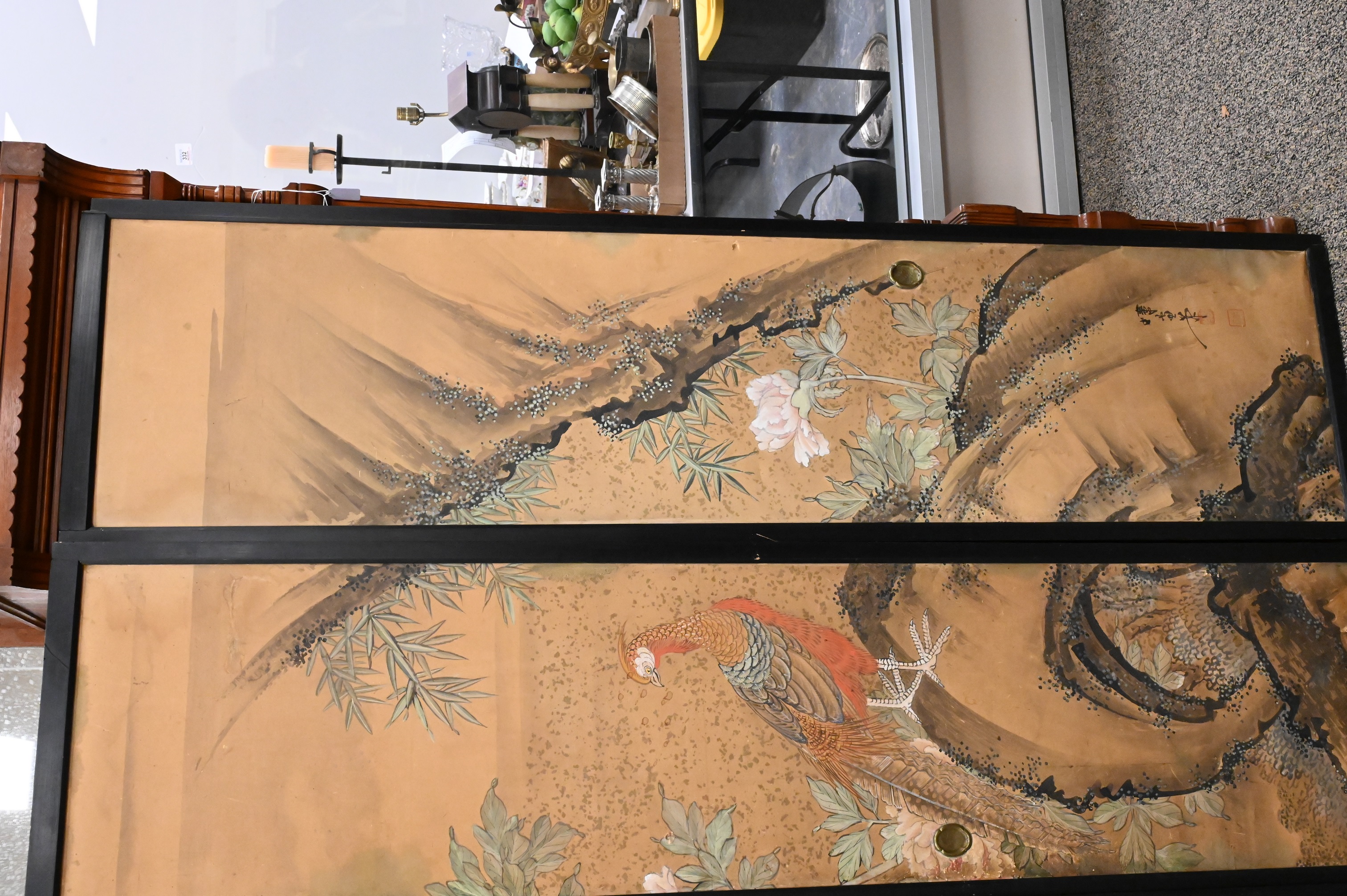 Lot 391: Japanese Watercolor on Paper Fusuma Door Panels