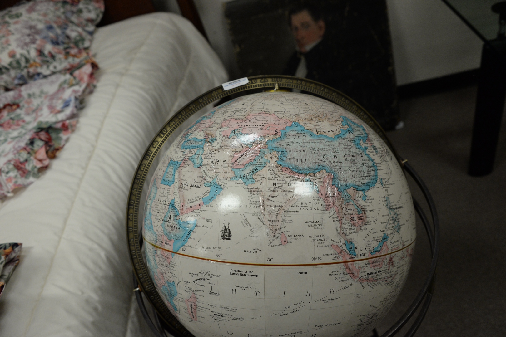Replogle World Classic Series 16″ Globe, raised on metal stand, height 41 inches.