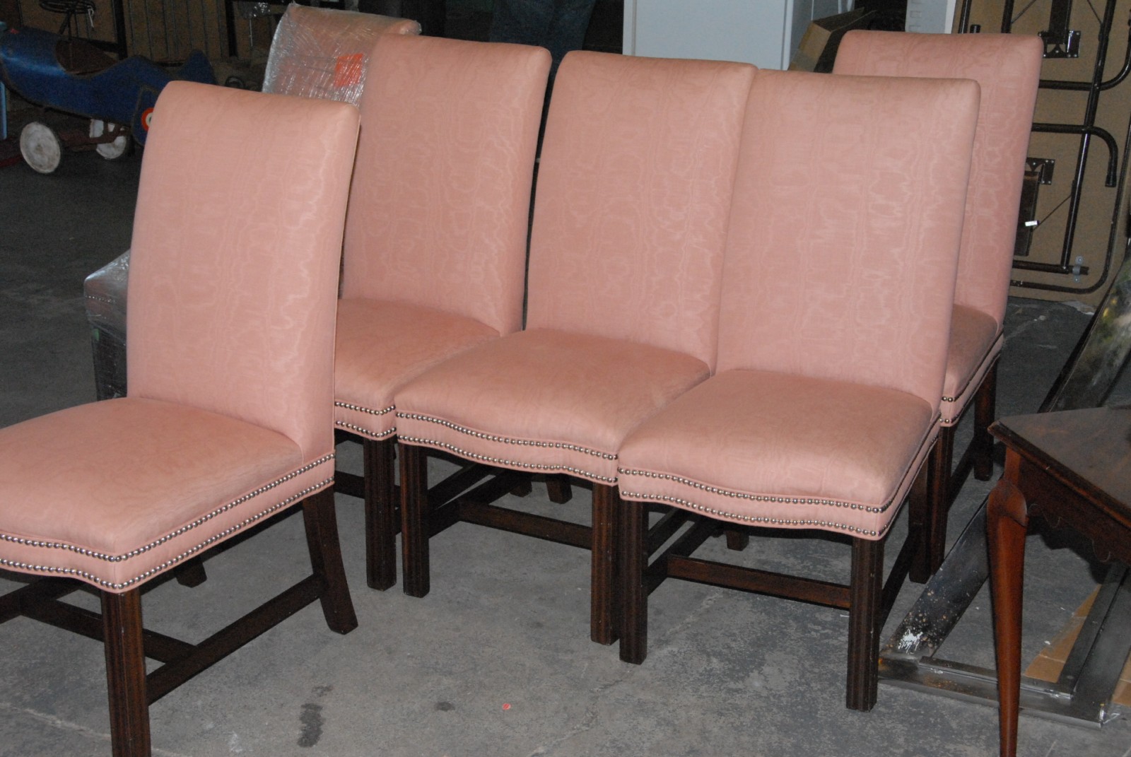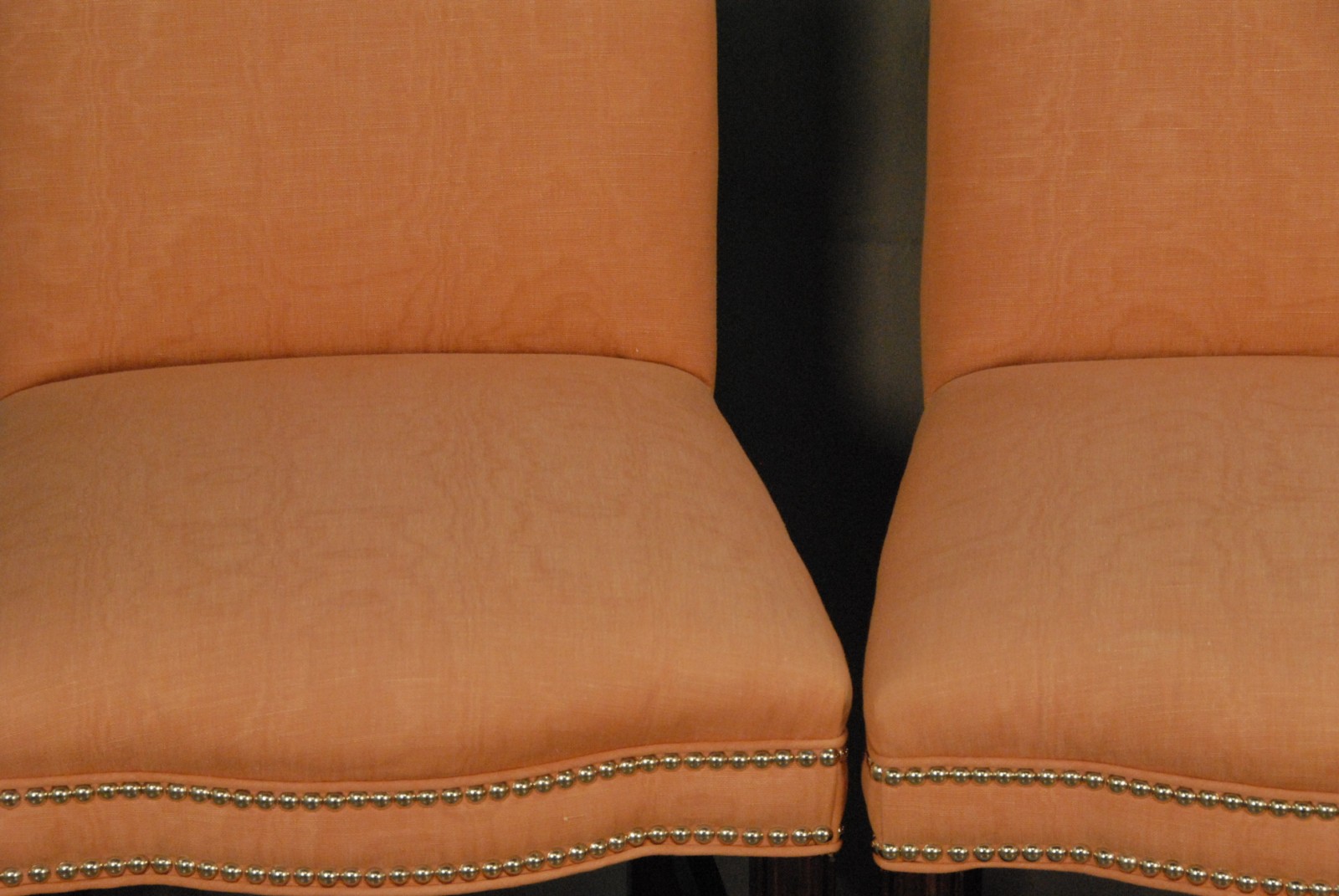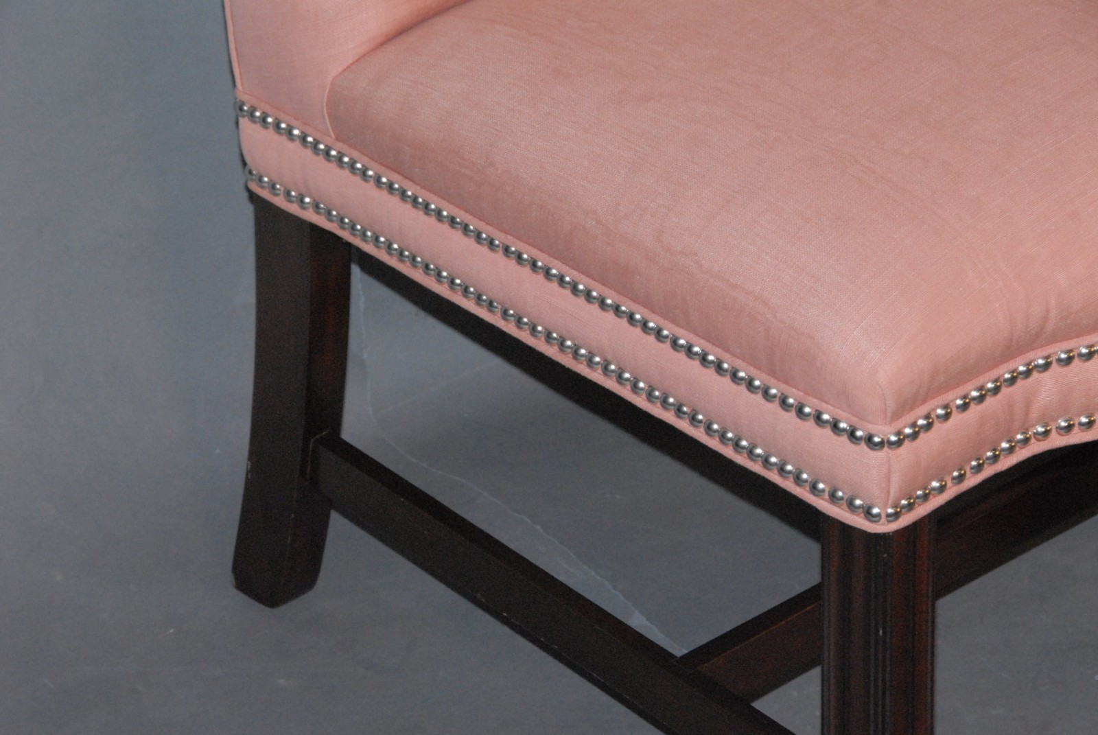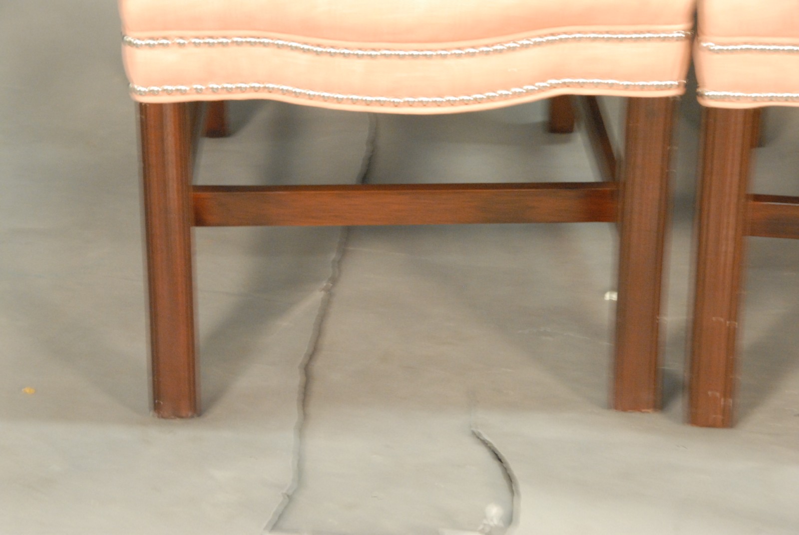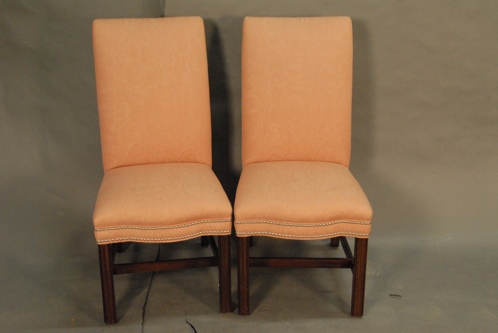Set of ten Chippendale style dining chairs fully upholstered signed Brunschwig and Fils.