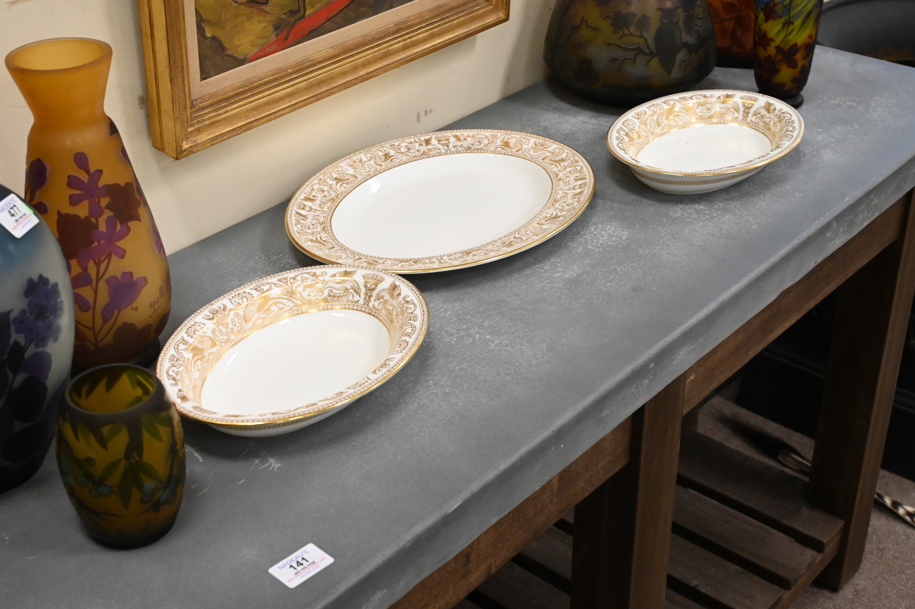 44 Piece Wedgewood Dinner Service, to include 8 dinner plates, 8 salad plates, 9 bread and butter plates, 8 cups, 8 saucers, along with 3 serving pieces.