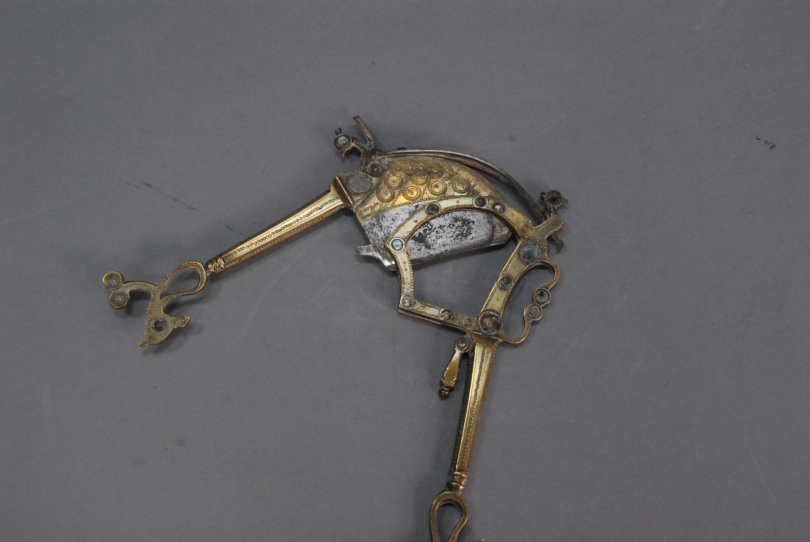 Lot 392: Brass Betel nut cutter with animal handles mounted with stones, probably 17th/18th century. ht. 7 in. Provenance: Property from a Private Collection Sold for the Benefit of the Virginia Historical Society.