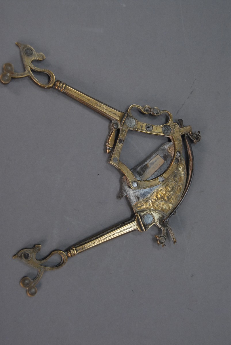 Brass Betel nut cutter with animal handles mounted with stones, probably 17th/18th century. ht. 7 in. Provenance: Property from a Private Collection Sold for the Benefit of the Virginia Historical Society.
