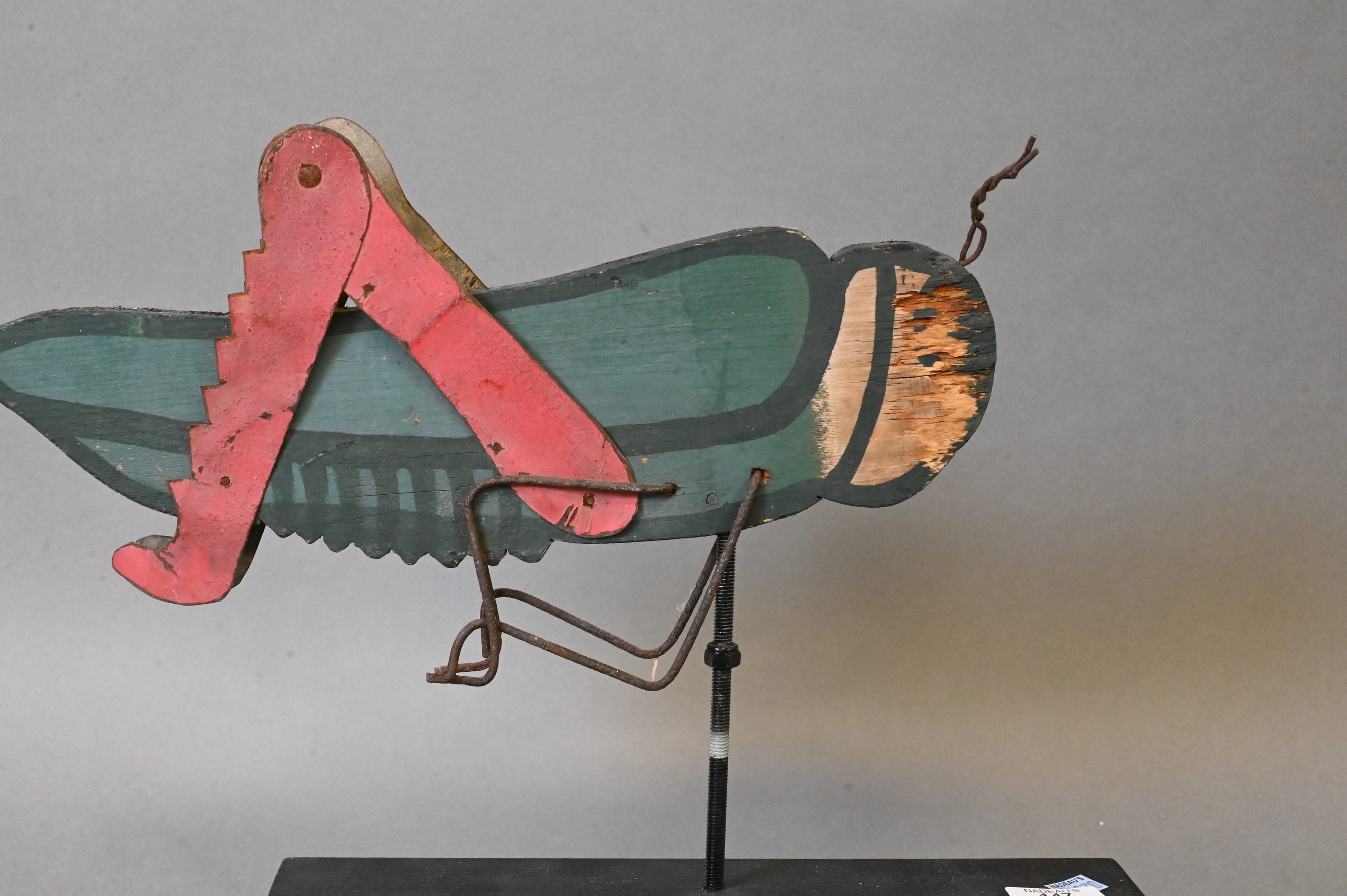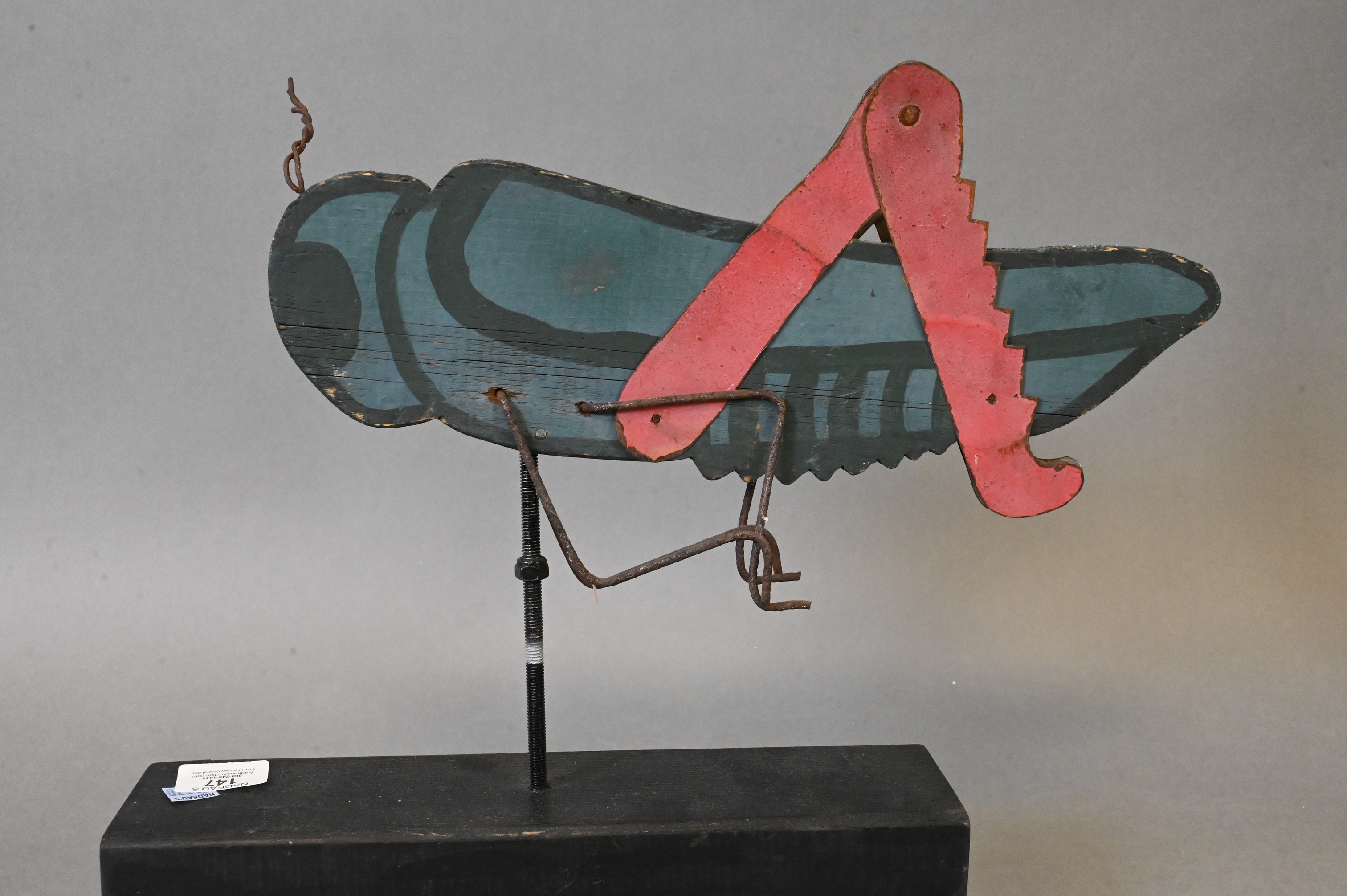 Lot 392: Captain Vernon Bryant Folk Art Duck along with Painted Wooden Grasshopper Weathervan