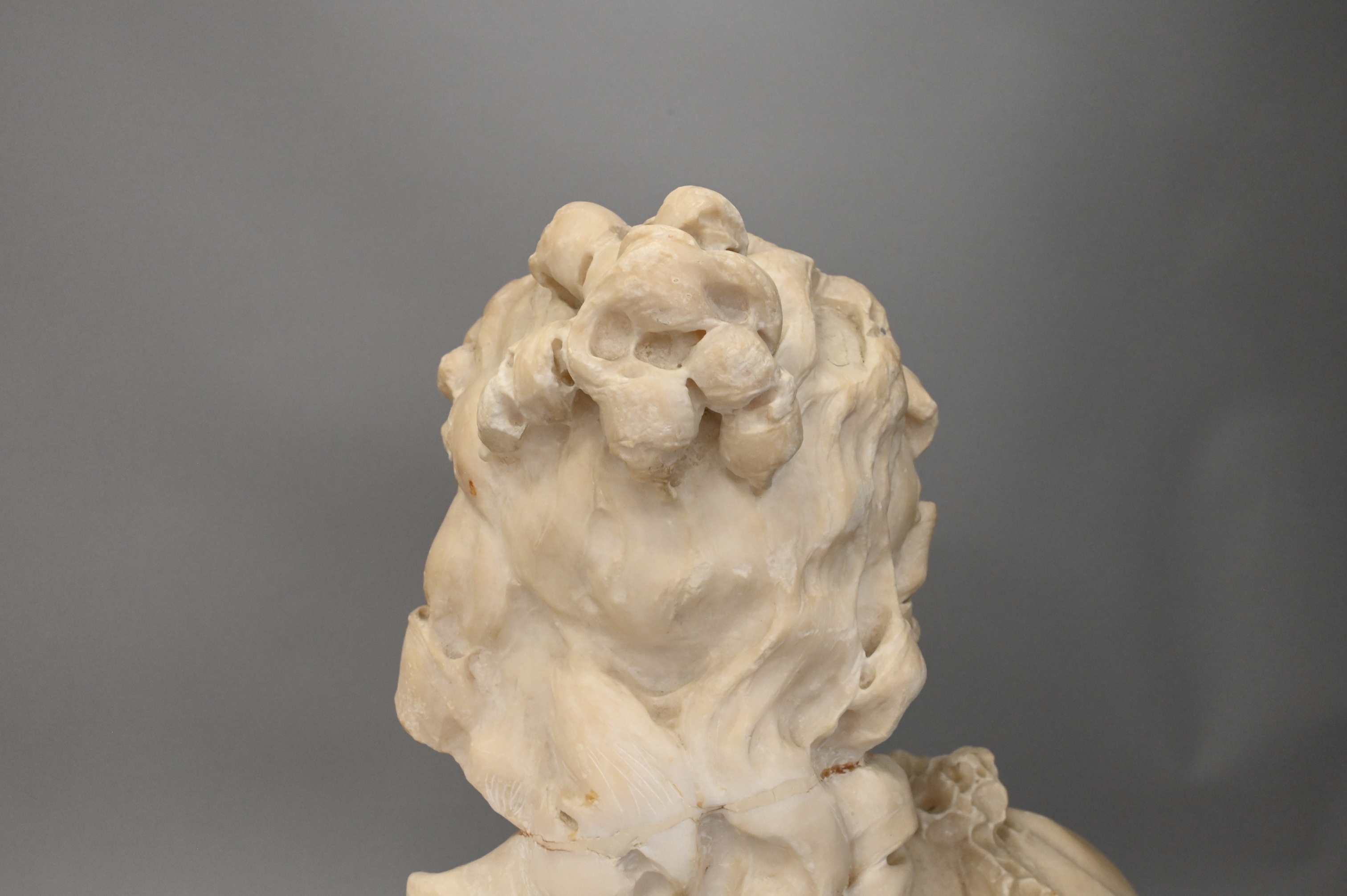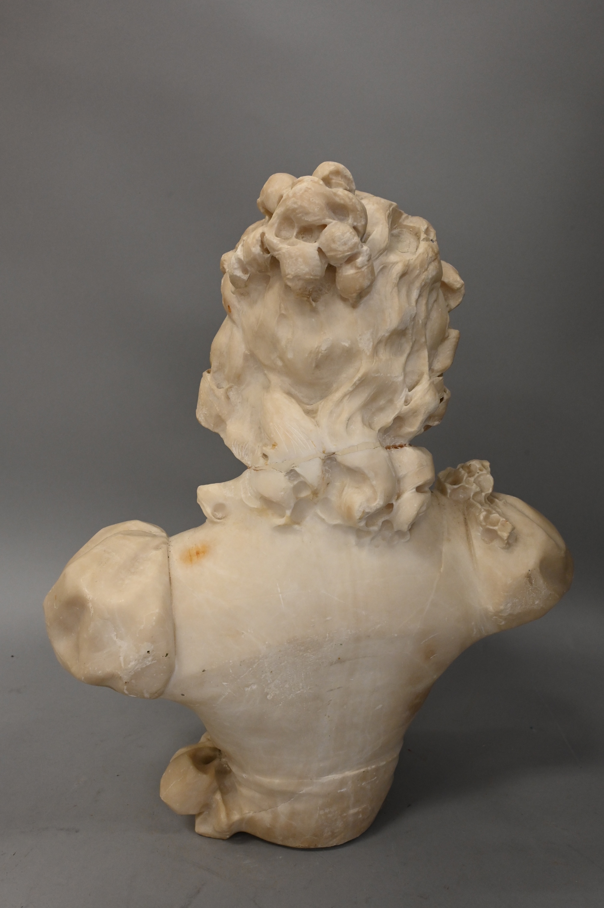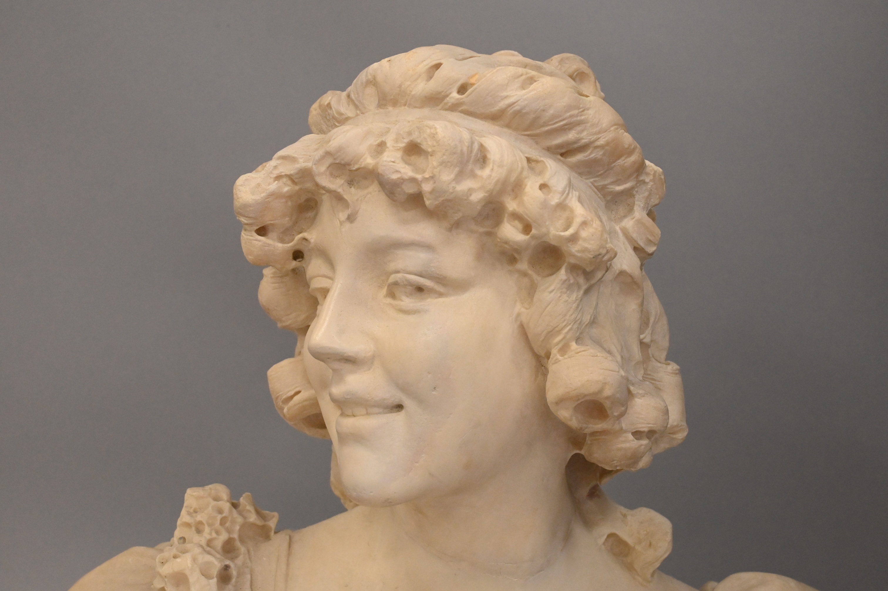 Carved Marble Female Bust, in the manner of Adolfo Cipriano (Italian), having repaired neck, height 20 inches.