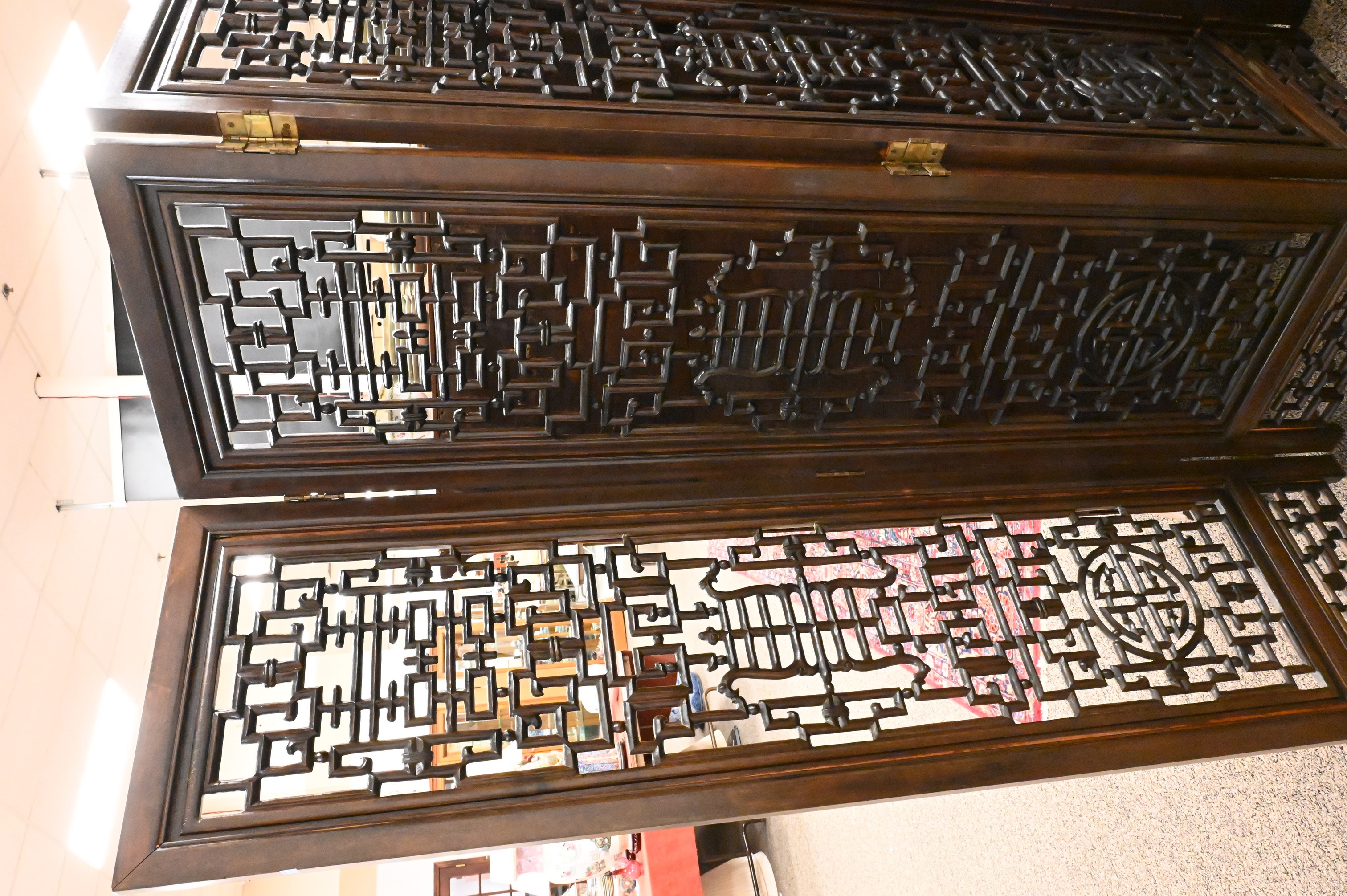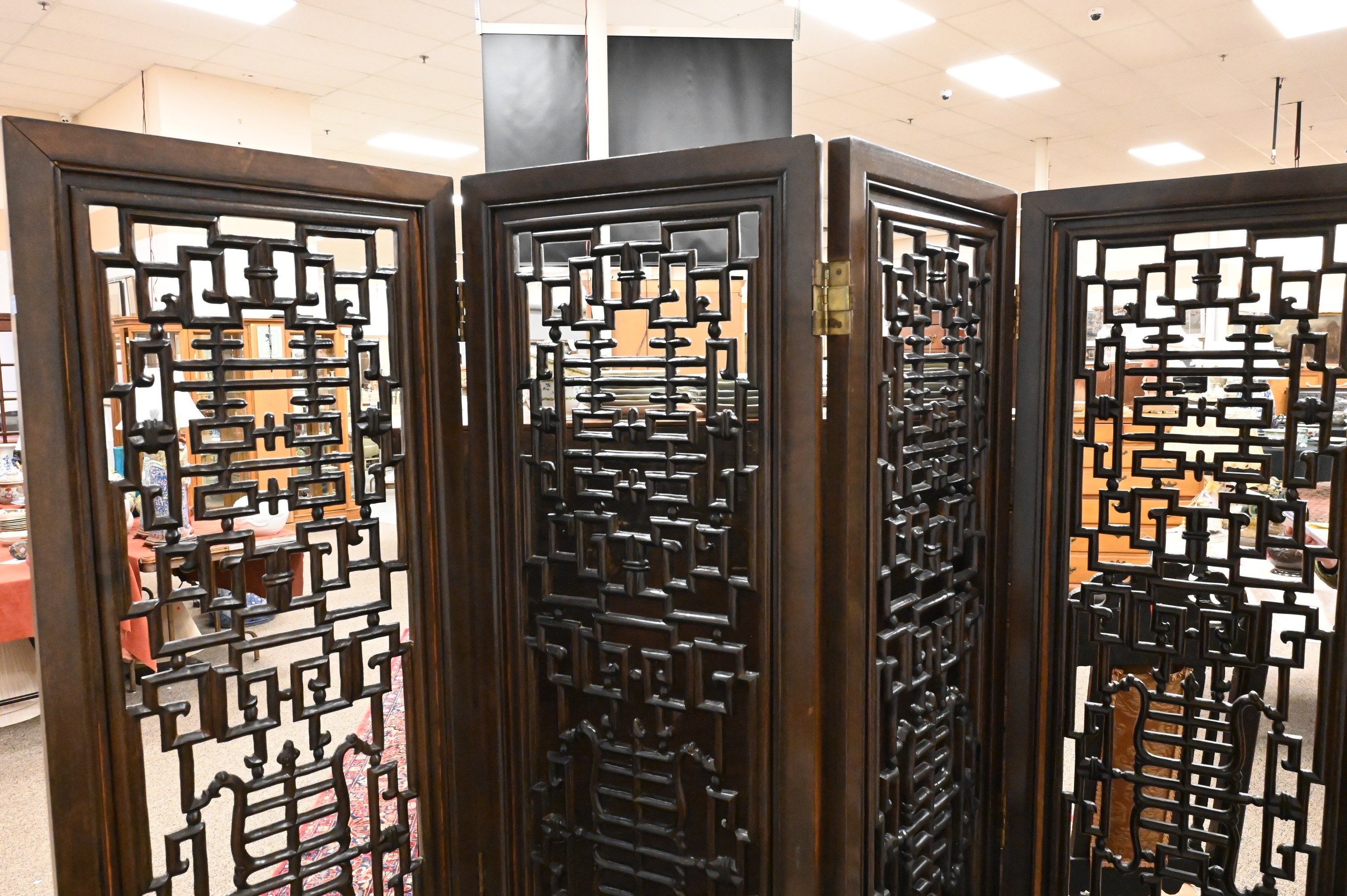 Lot 392: Chinese Hardwood Four Section Screen having Openwork Carving