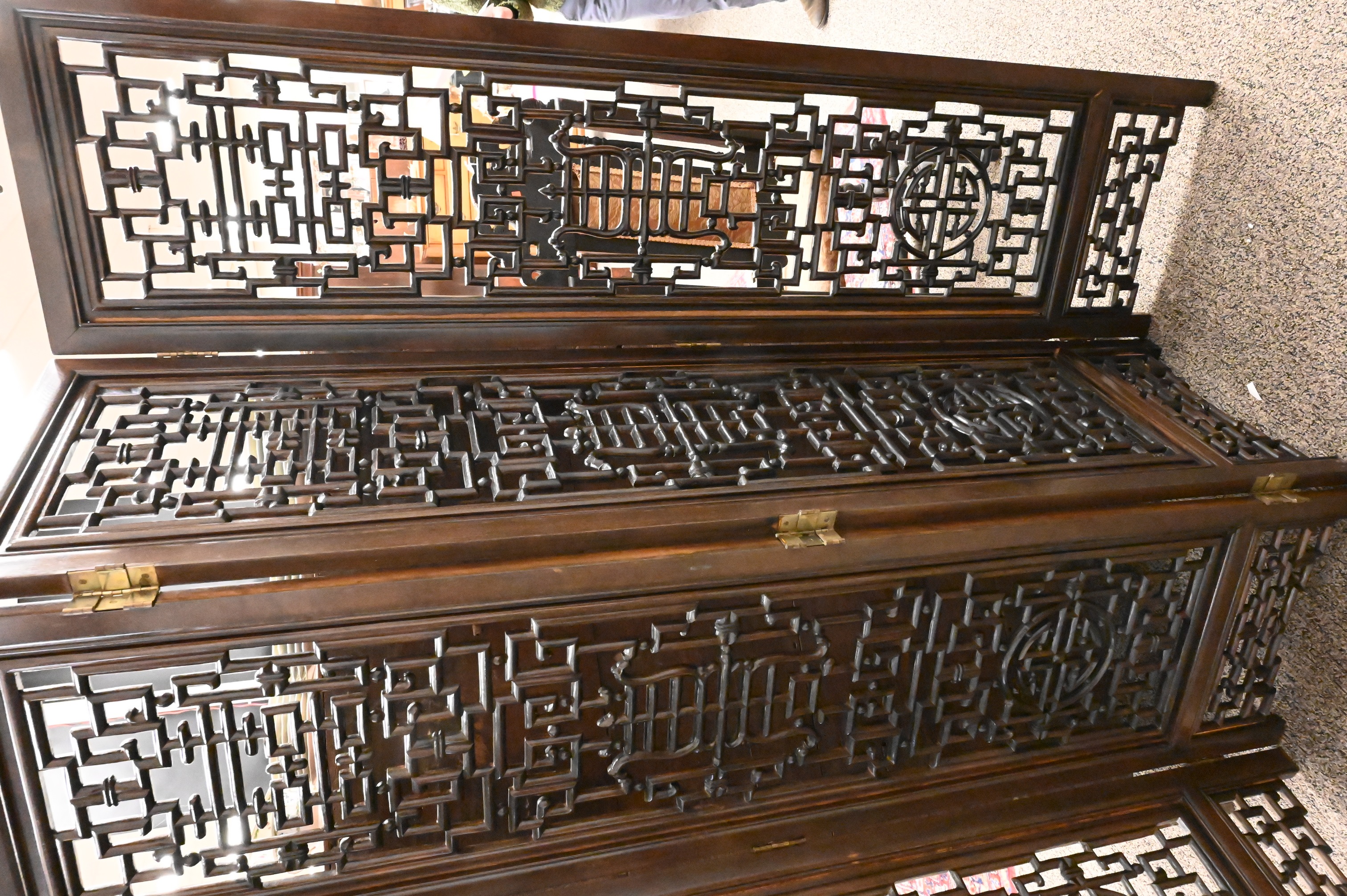 Chinese Hardwood Four Section Screen having Openwork Carving