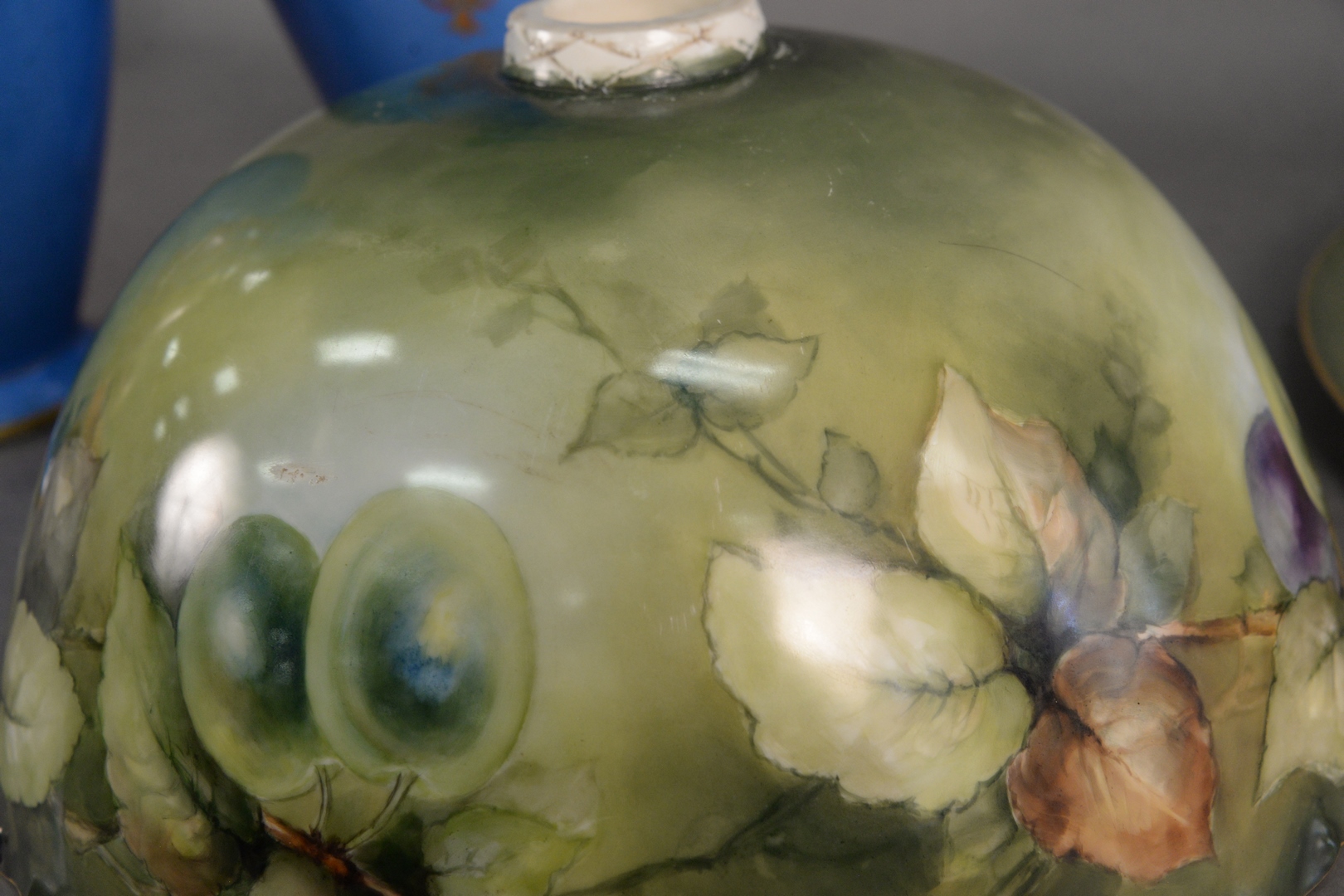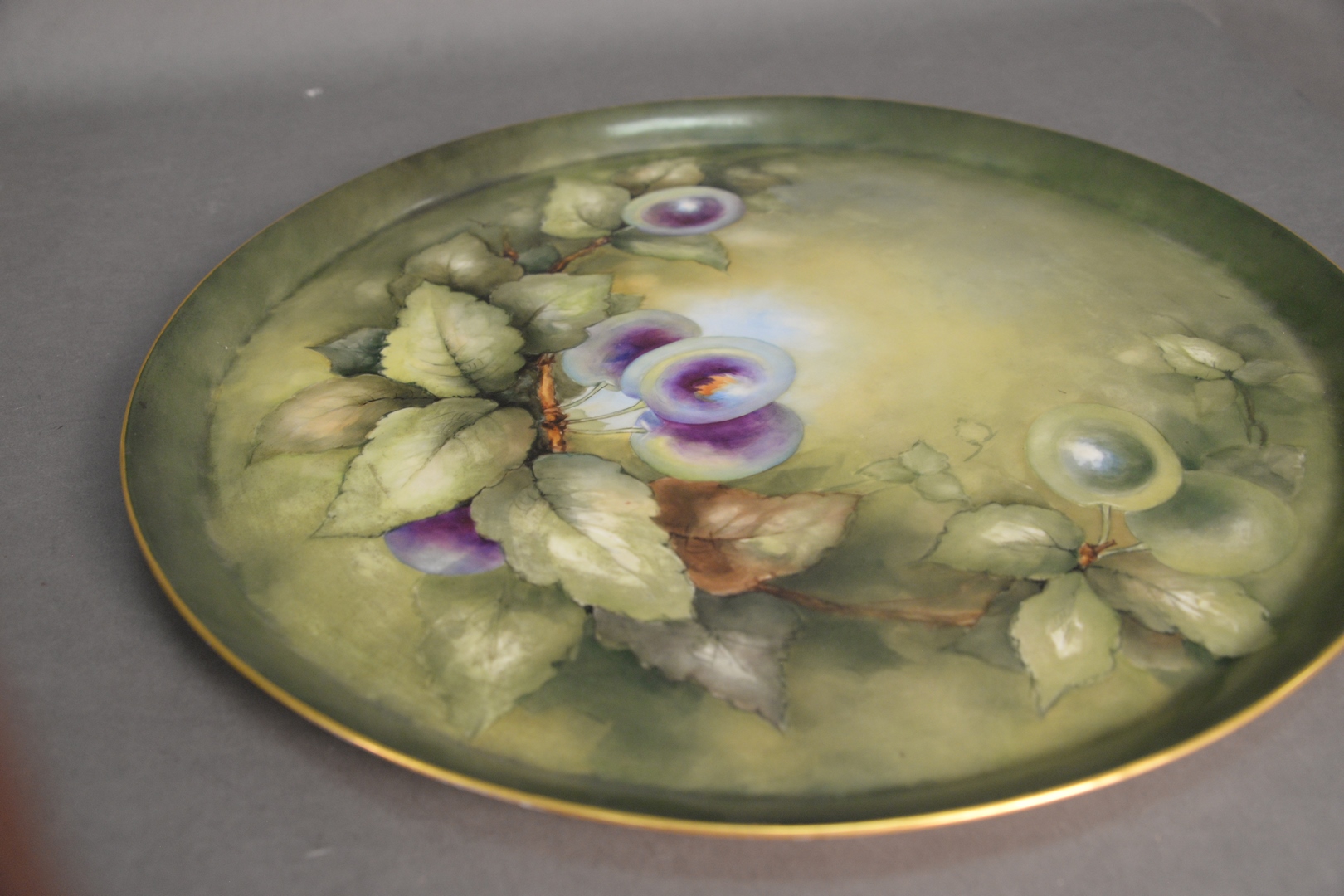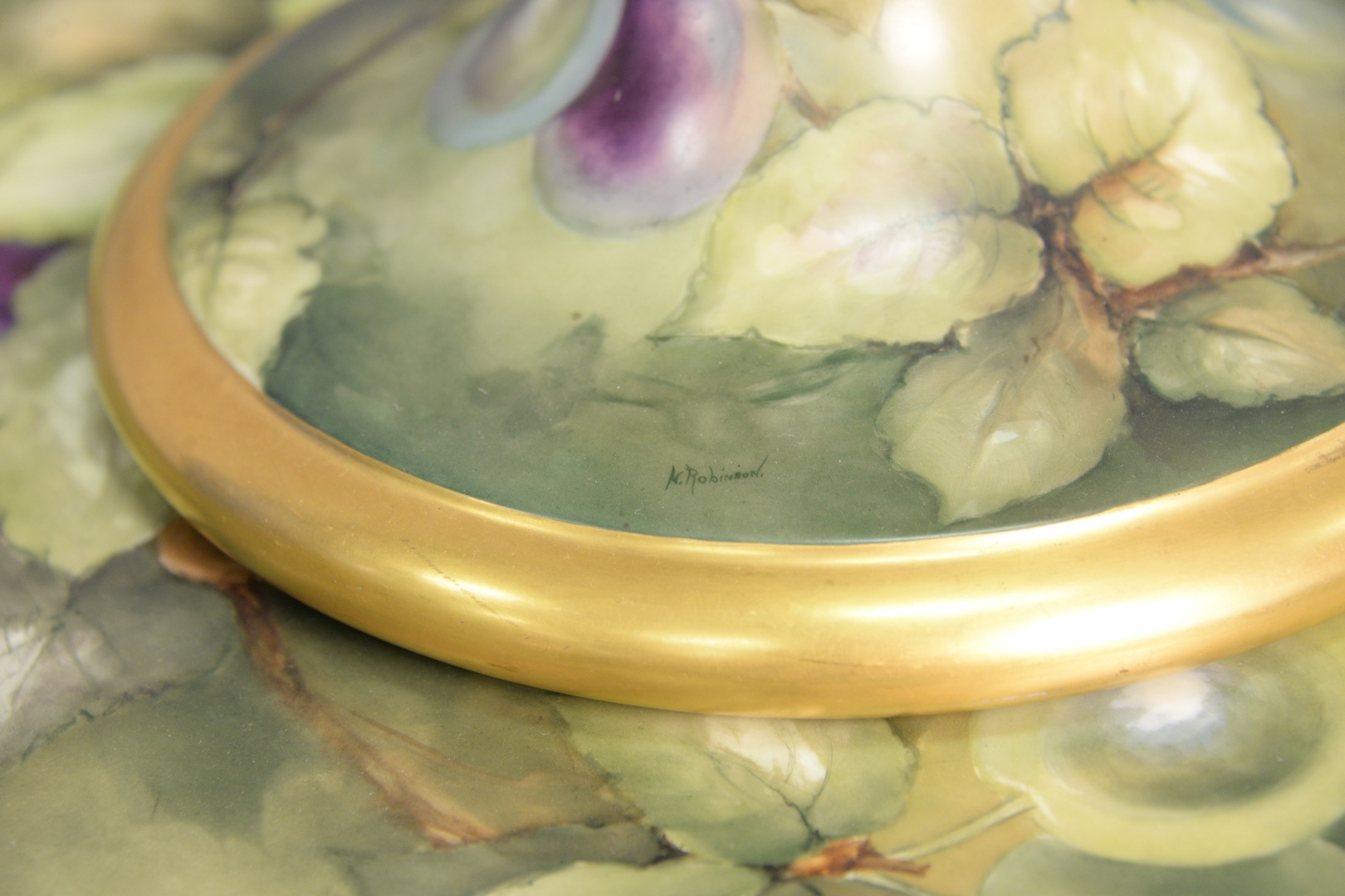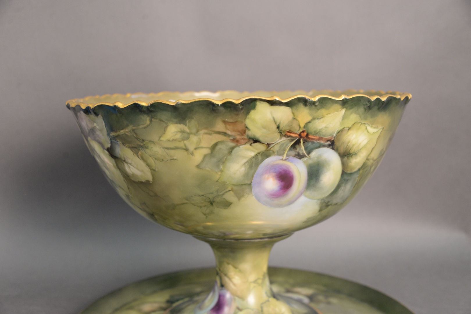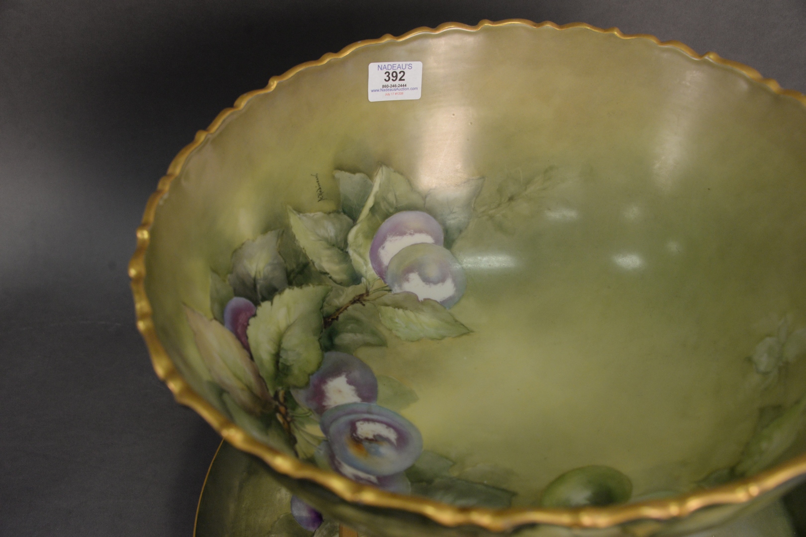 Lot 392: Large Belleek Porcelain Punch Bowl, having plum motif decoration, with fitted stand and under tray, diameter 15 1/4 inches. Provenance: Estate of James Wadhams