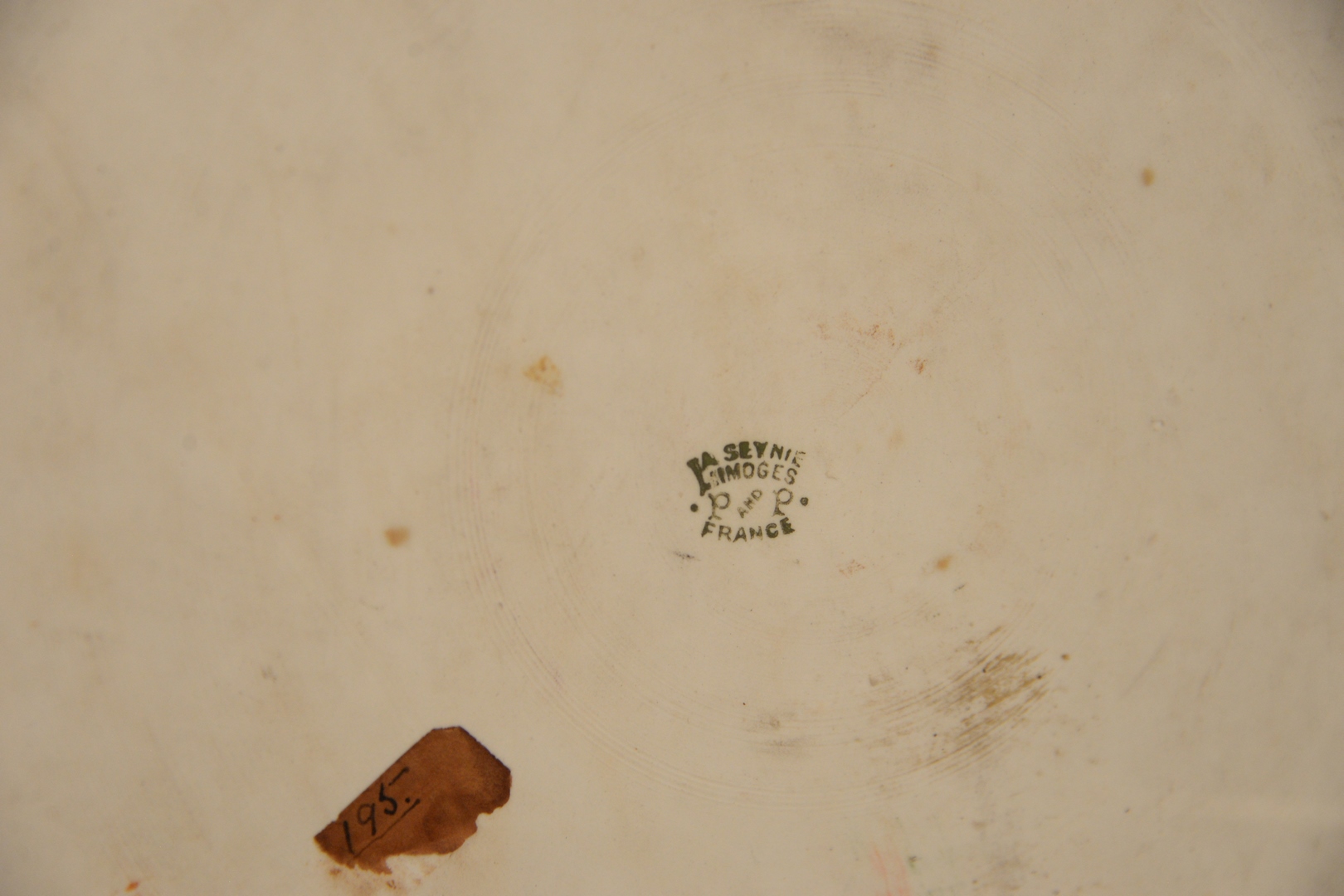 Large Belleek Porcelain Punch Bowl, having plum motif decoration, with fitted stand and under tray, diameter 15 1/4 inches. Provenance: Estate of James Wadhams
