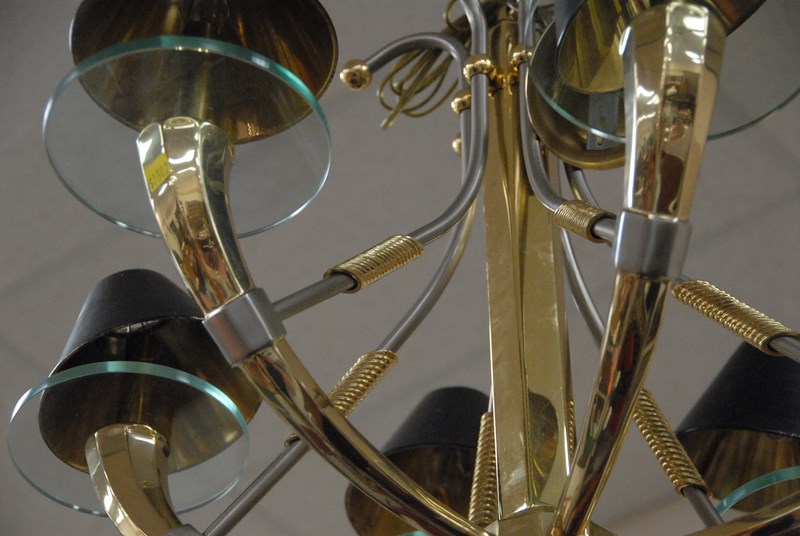 Nulco brass and nickle six light chandelier, ht. 24 in. dia. 32 in.