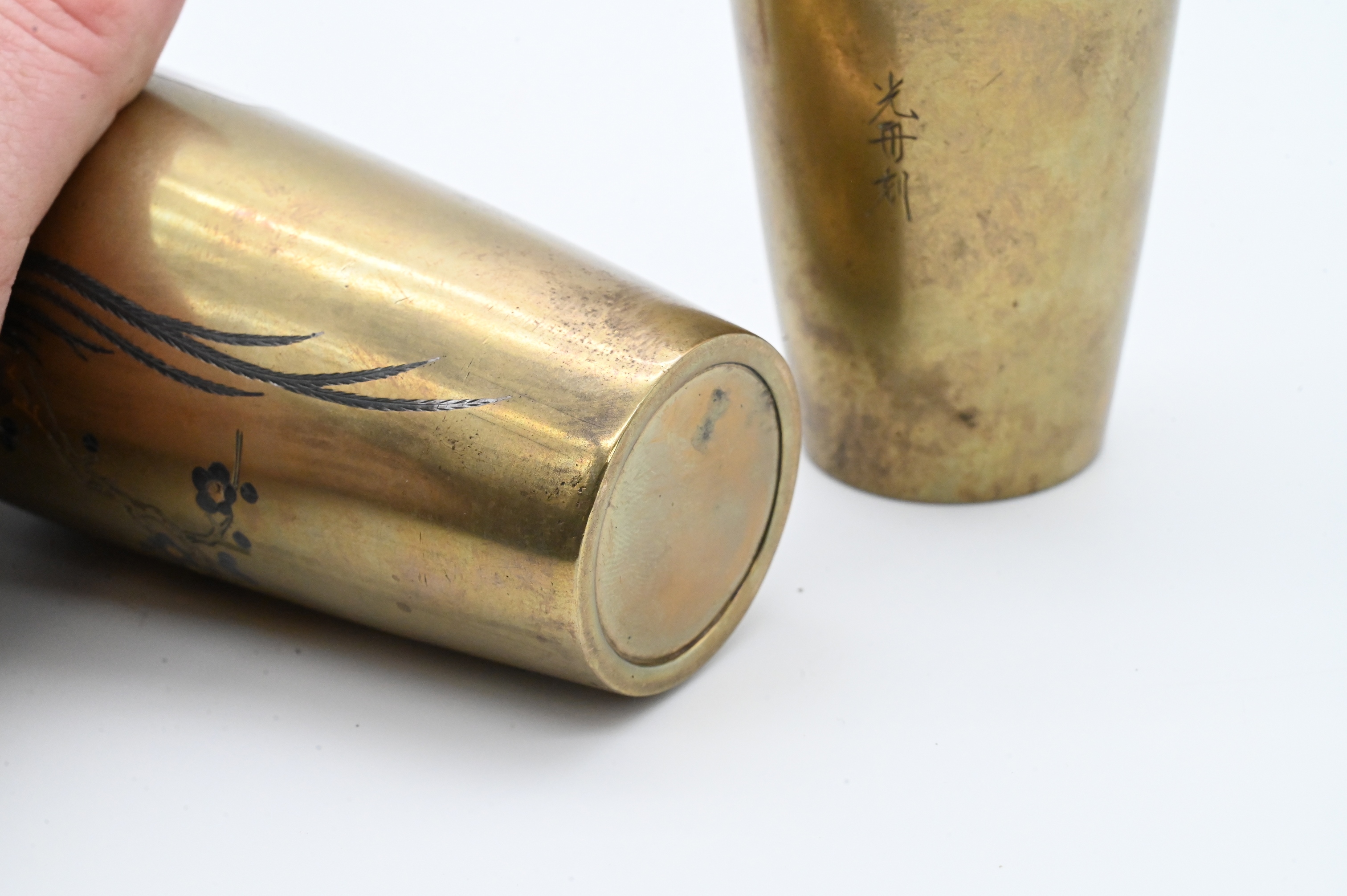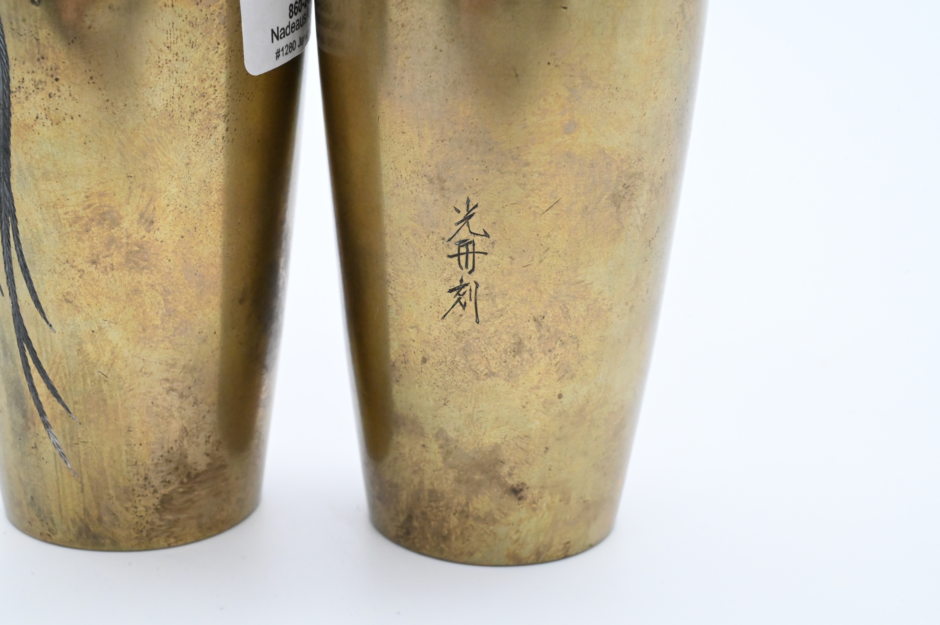 Lot 392: Pair of Japanese Brass Multi Metal Vases