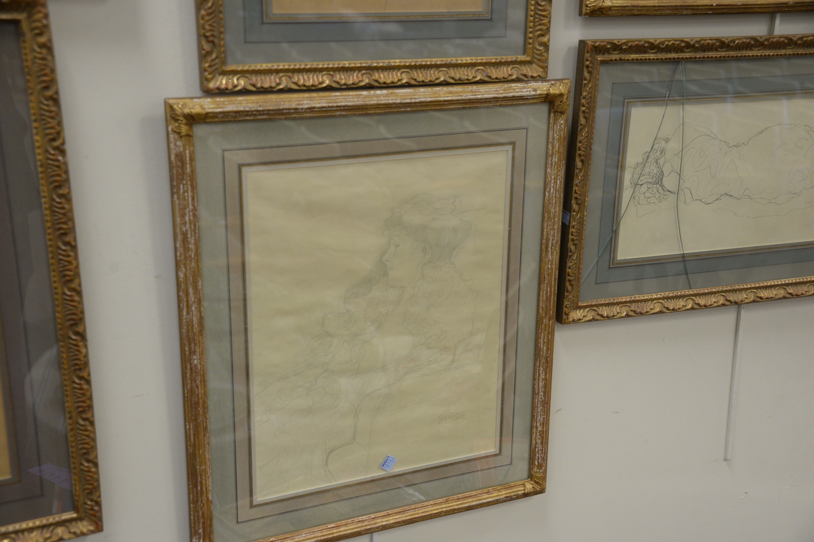 Set of Six Gustav Klimt Prints of Figures, sight size 19 x 12.