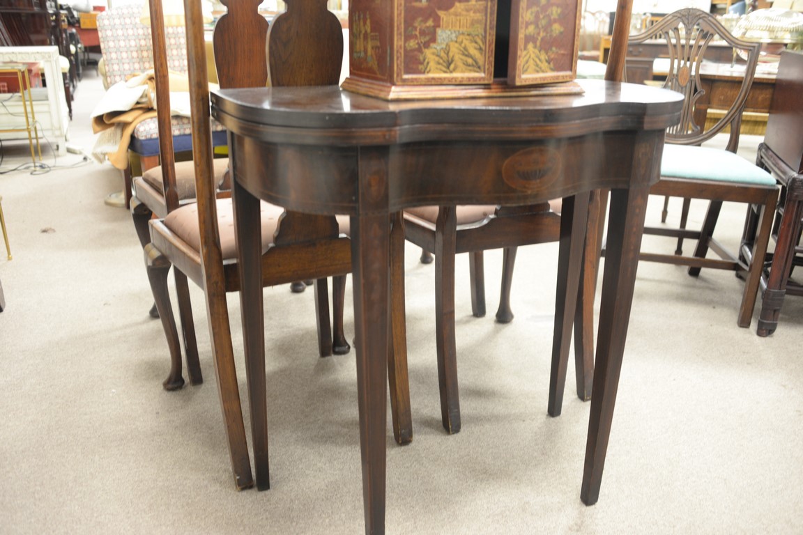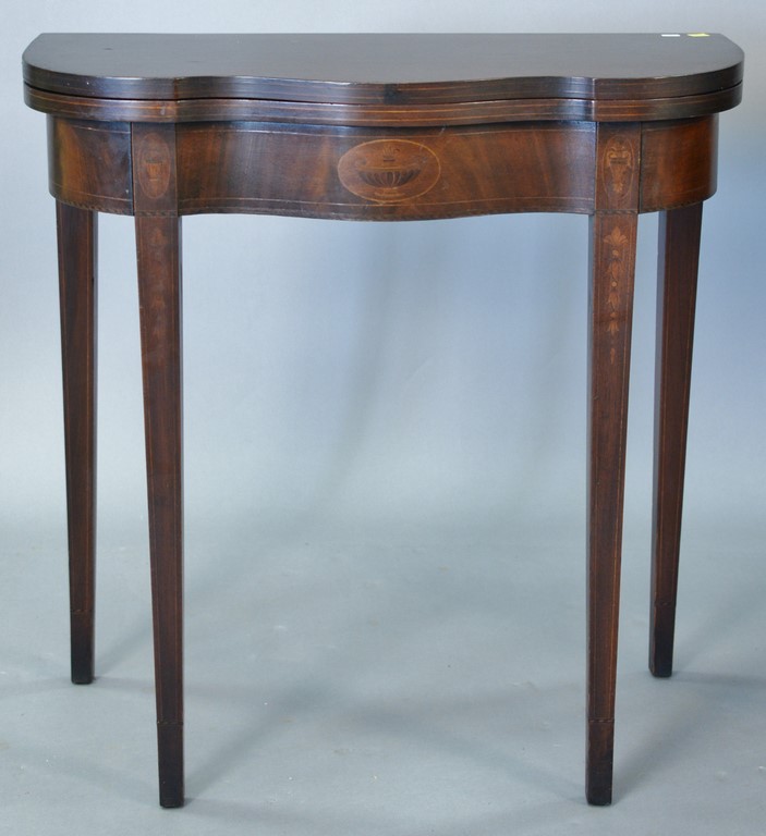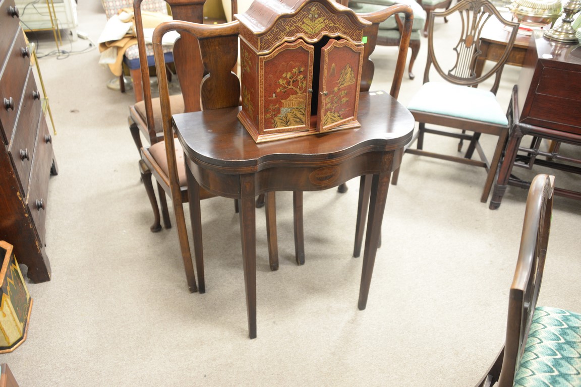 Small mahogany inlaid game table. ht. 32in., wd. 30in., dp. 15in.