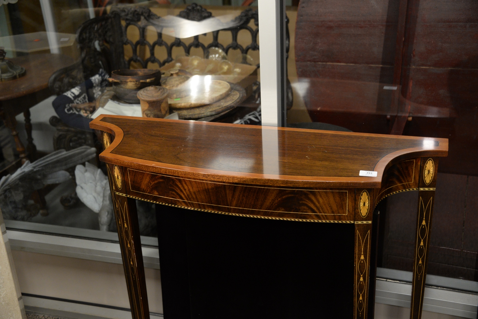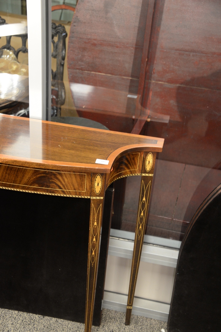Stickley Mahogany Inlaid Console Table, height 32 inches, width 38 inches.