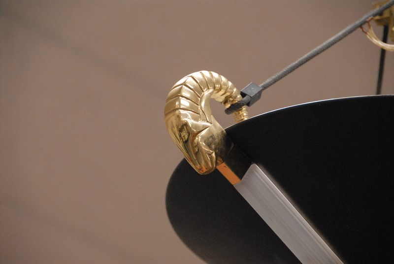 Lot 392A: Brass and glass black hanging light, ht. 14 in. dia. 20 in.