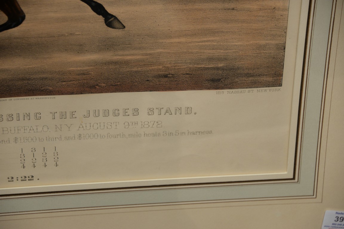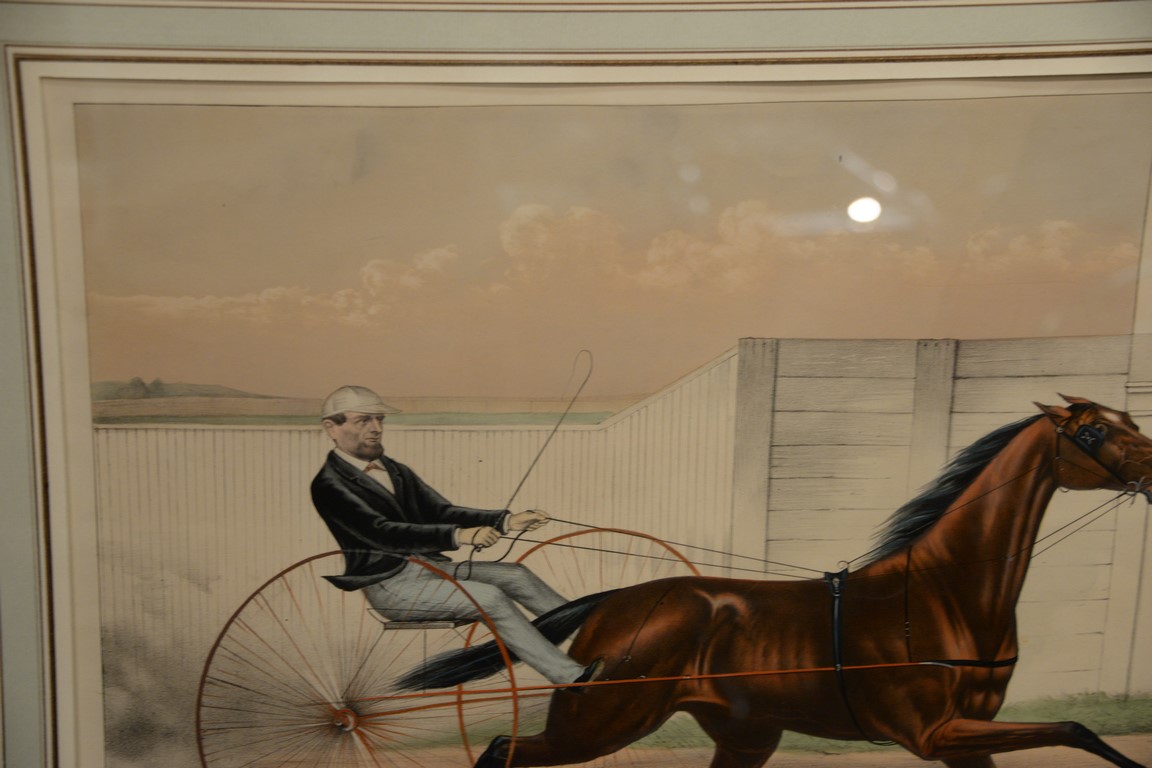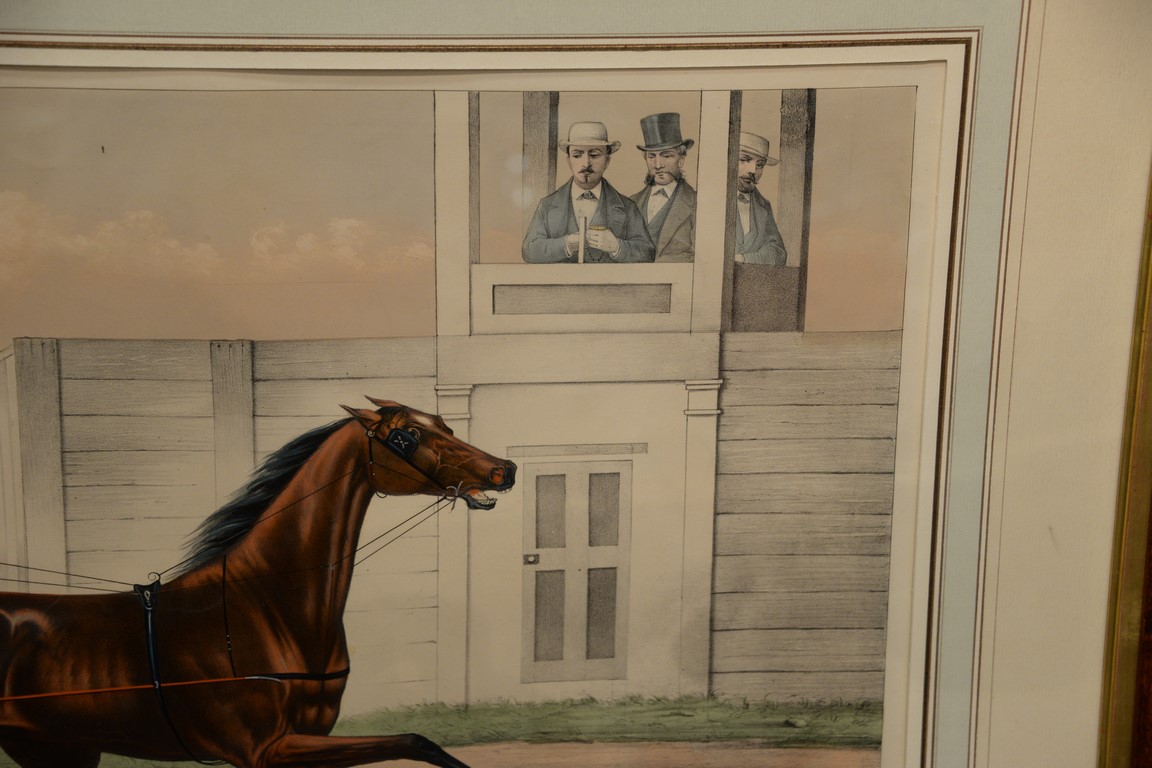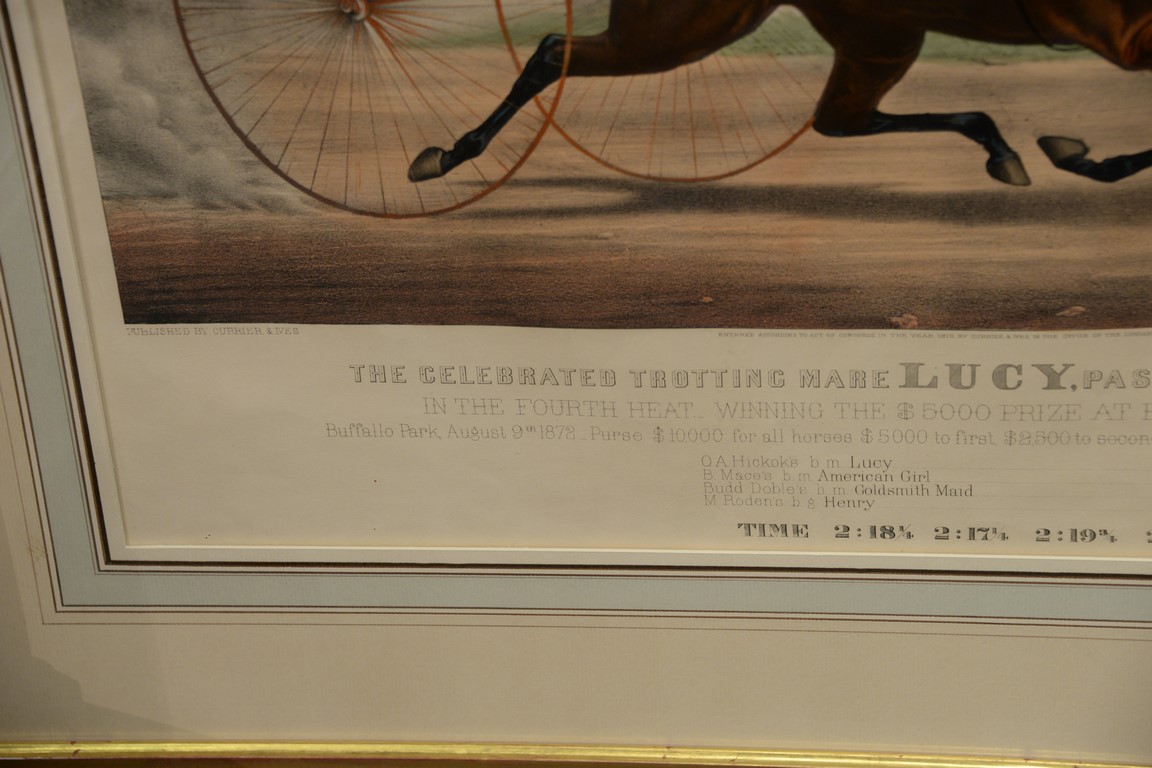 Lot 393: Currier & Ives large folio hand colored lithograph The Celebrated Trotting Mare Lucy, Passing the Judges Stand marked low…