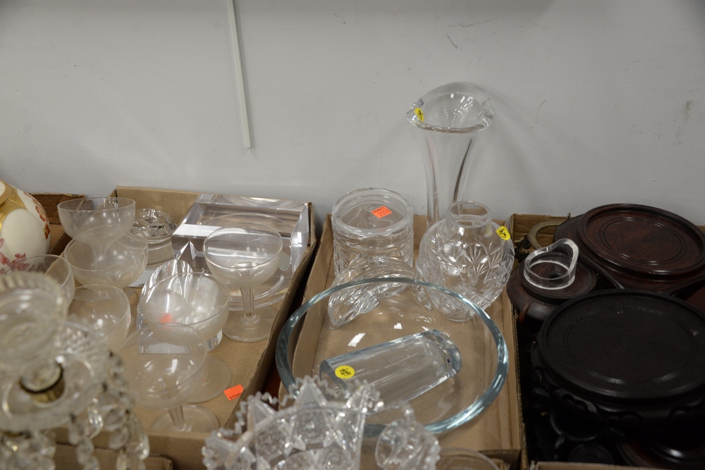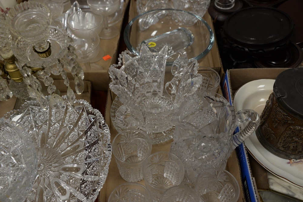 Four Tray Lots of Glass, to include cut glass and crystal bowls, vases, stems, glasses, etc.