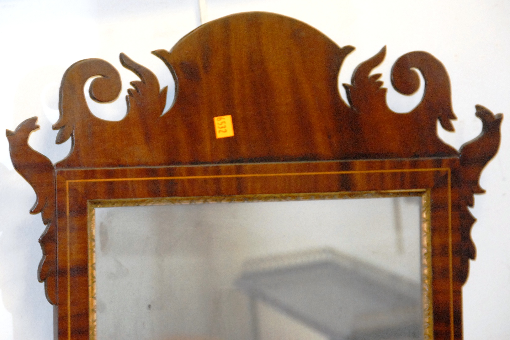 Mahogany Chippendale inlaid mirror, ht. 35, wd. 19 1/2.