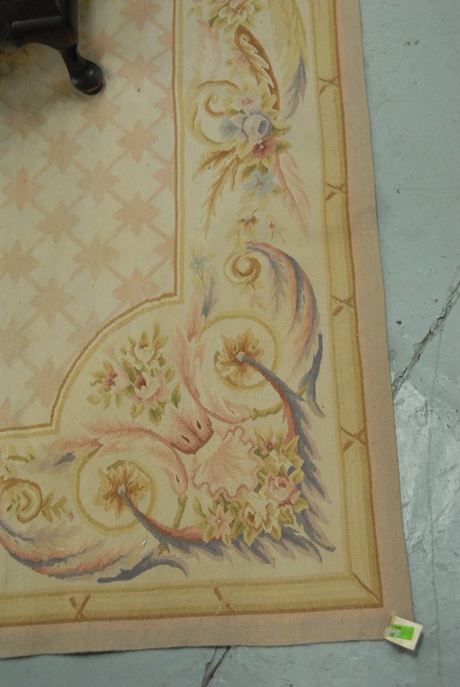 Lot 393: Needlepoint throw rug, 6′ x 9’1.