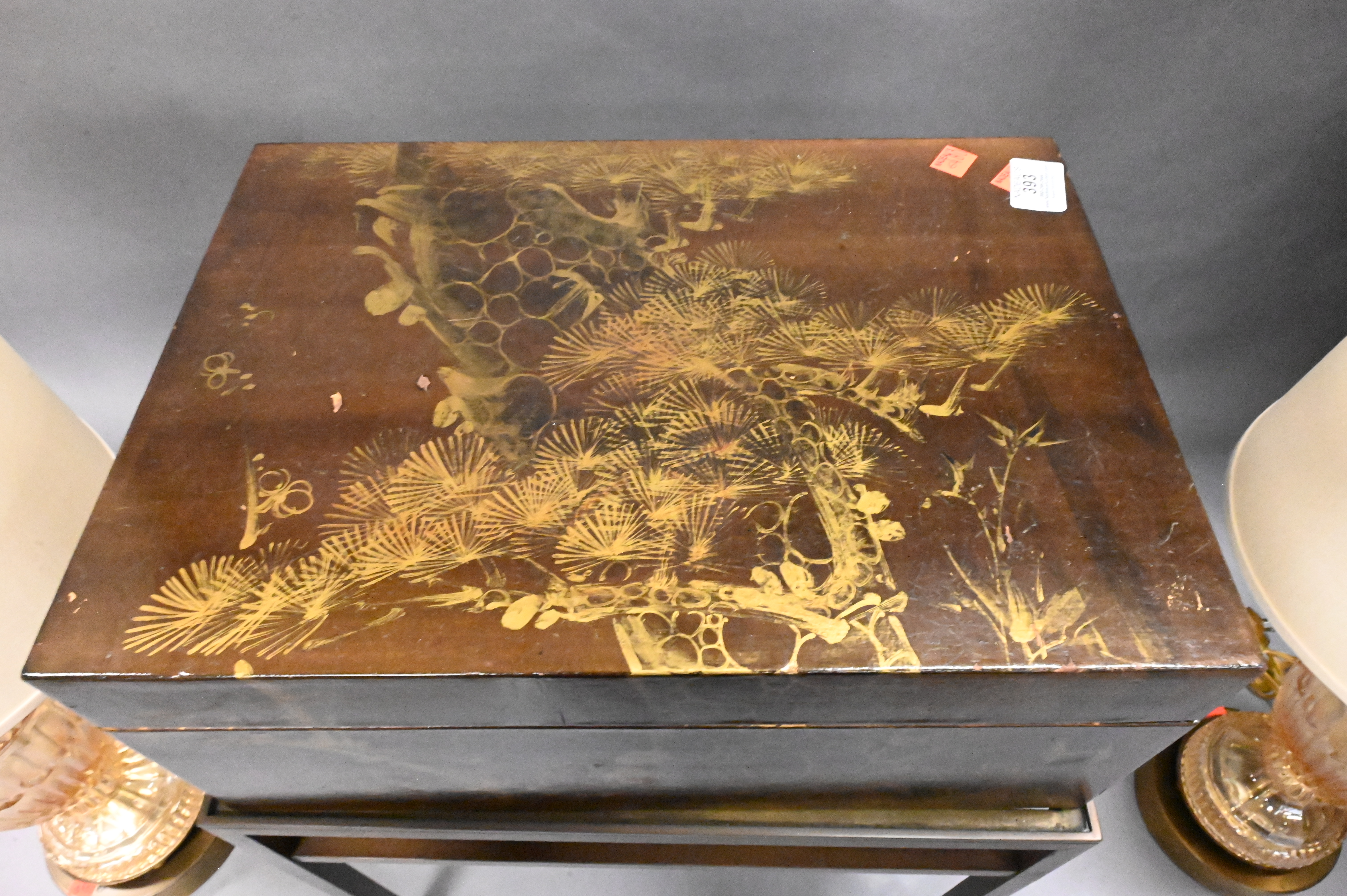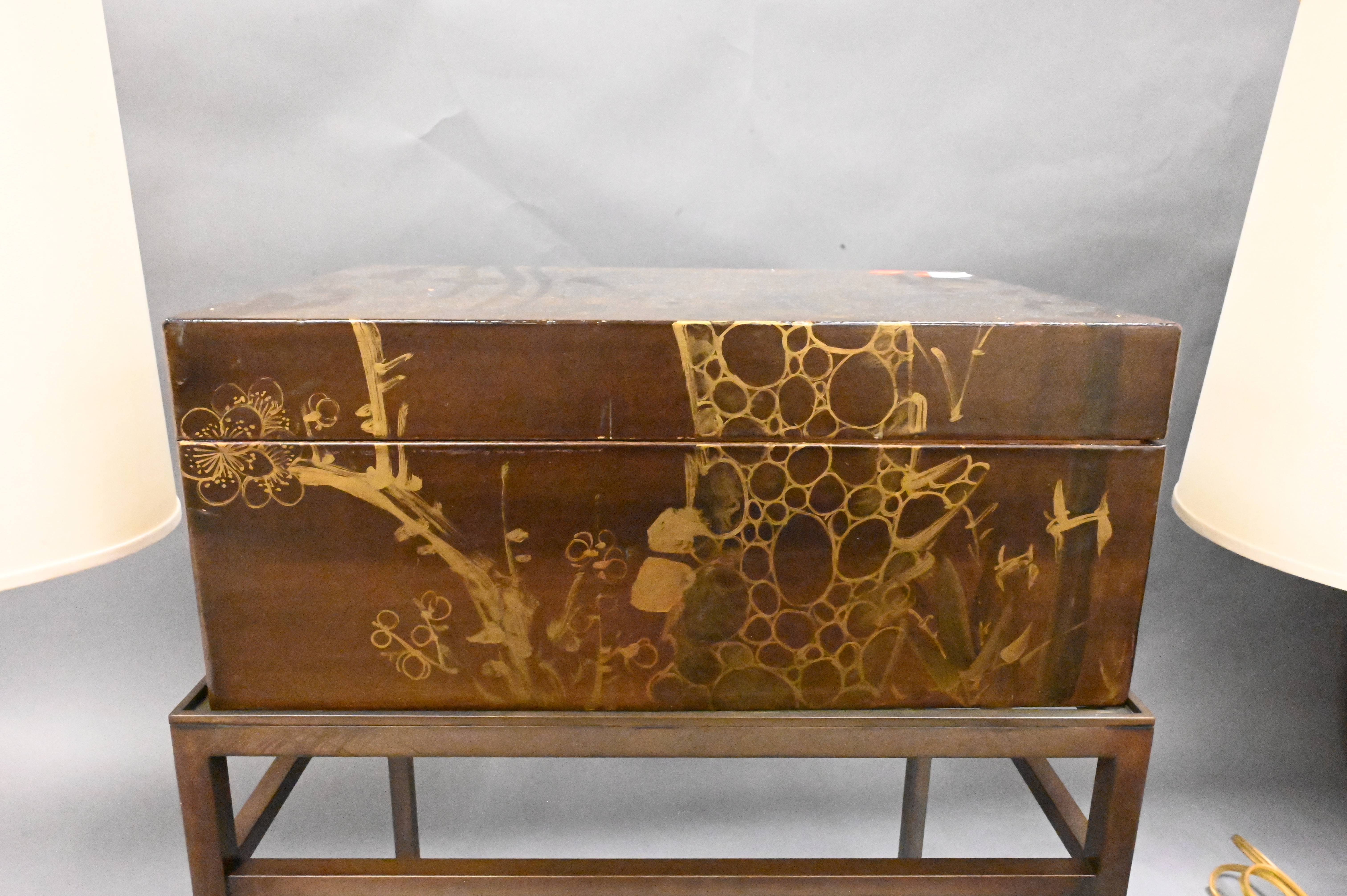 Lot 393: Pair of Urn Form Glass Lamps along with Japanese Lift Top Box
