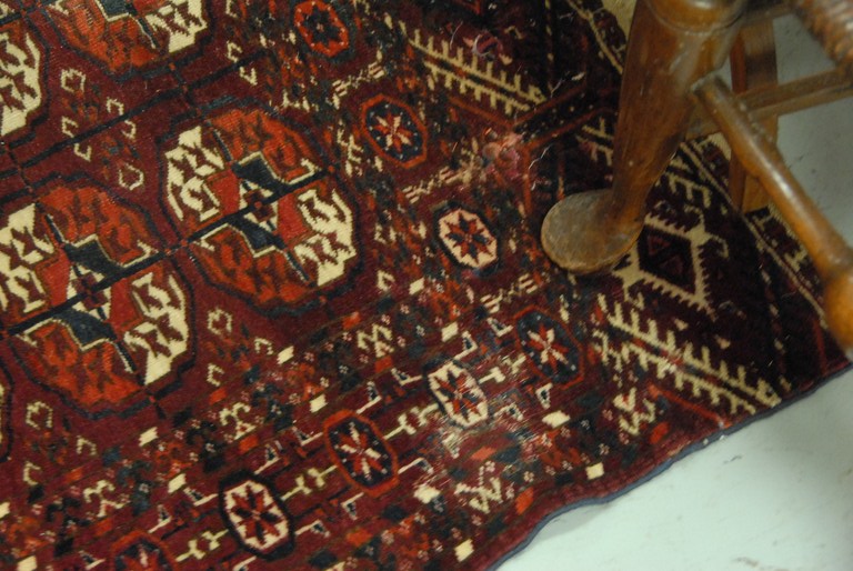 Turkoman Oriental rug, 3’7 x 4′. Provenance: Estate of Judy McDonough Gengras of Stoner Drive, West Hartford, Connecticut.