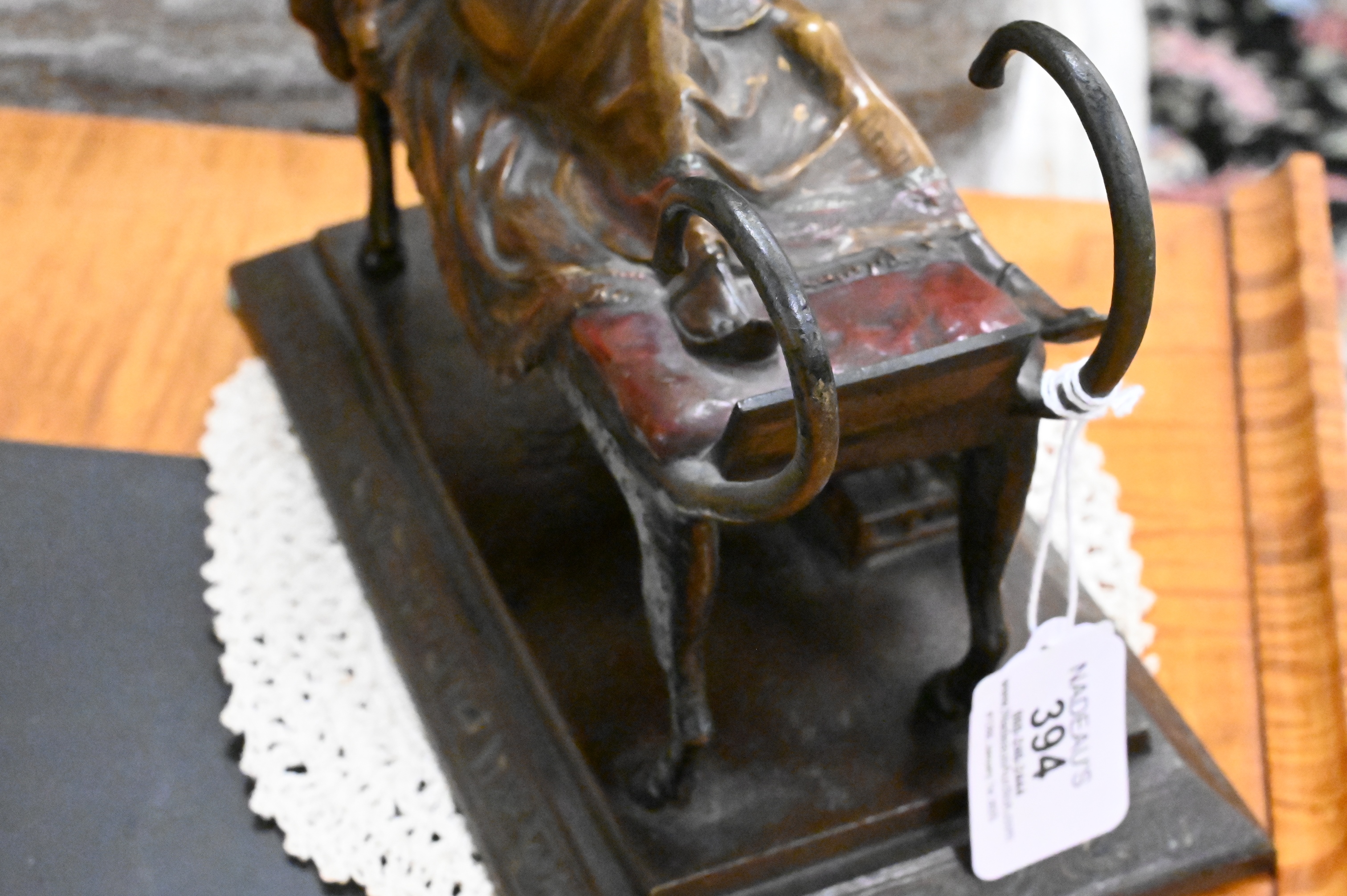 Condition: Very good condition, paint loss to hat, tail, and base, one tail slightly bent