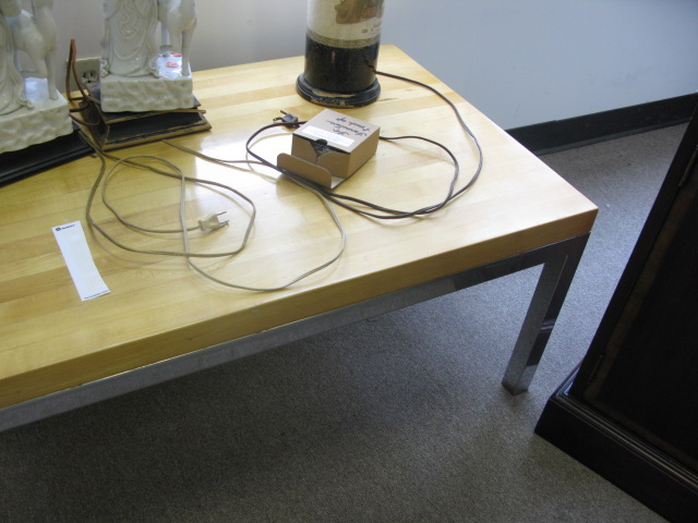 Butcher block type coffee table with chrome base