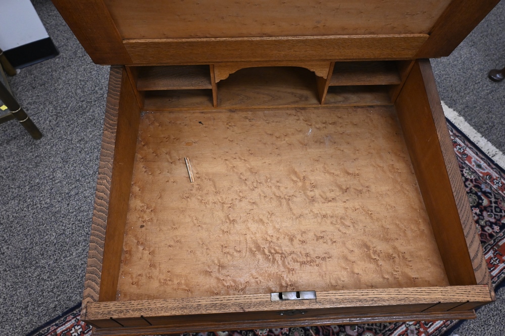 Oak Davenport Desk, having side drawer, height 36 3/4 inches, top 23 1/2″ x 23 1/2″.