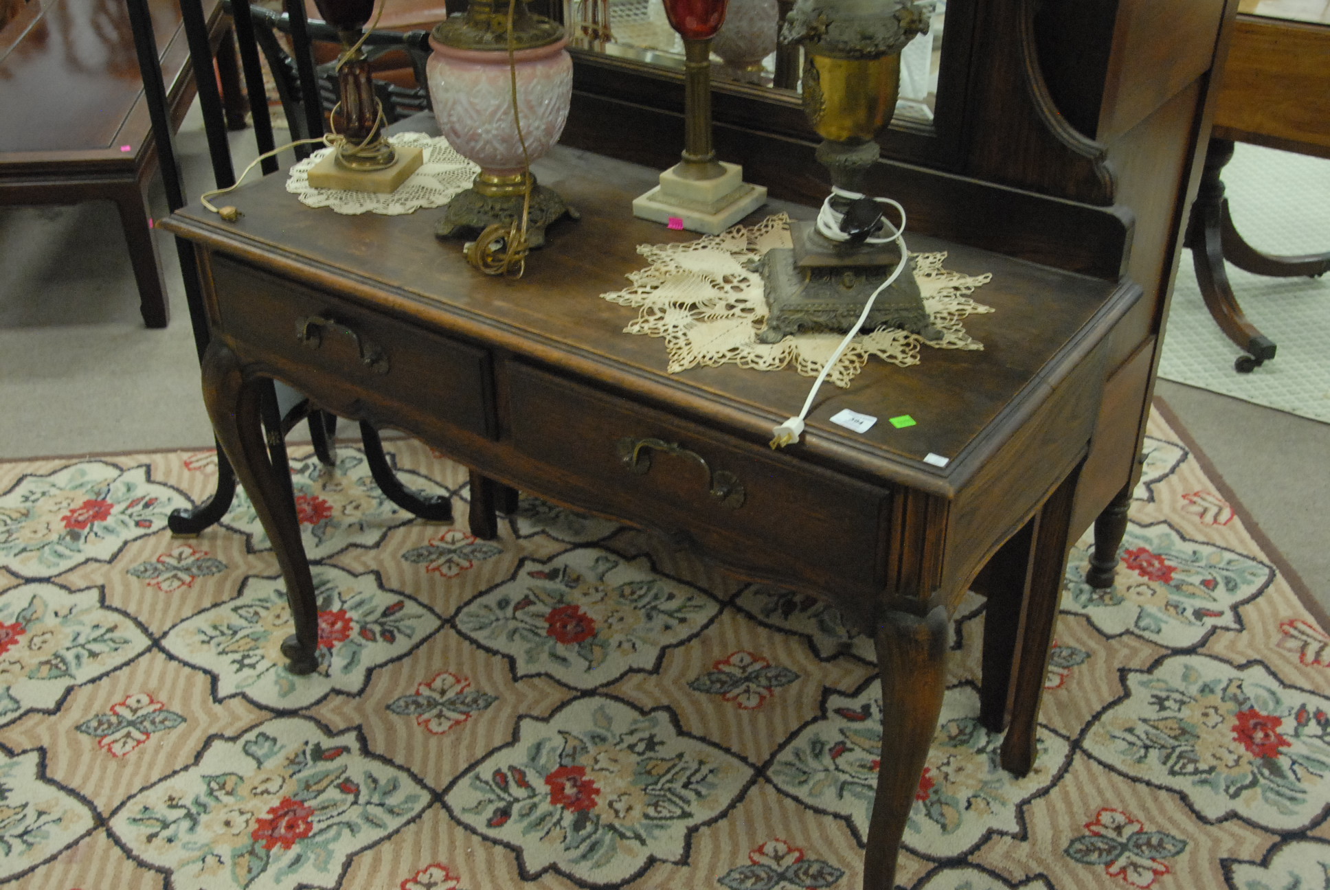 Oak vanity and mirror.ht. 57 in. wd. 43 in.